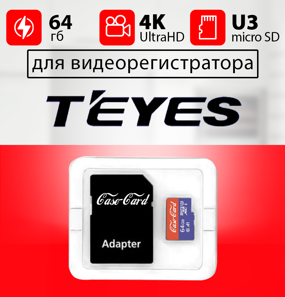 Карта памяти для видеорегистратора Teyes / флешка подходит для Teyes 64 гб Case Card 10 U3 V30 Ultra HD интересное: