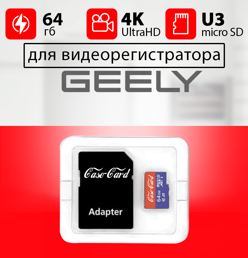 Карта памяти для видеорегистратора Geely / флешка подходит для Джили 64 гб Case Card 10 U3 V30 Ultra HD интересное: