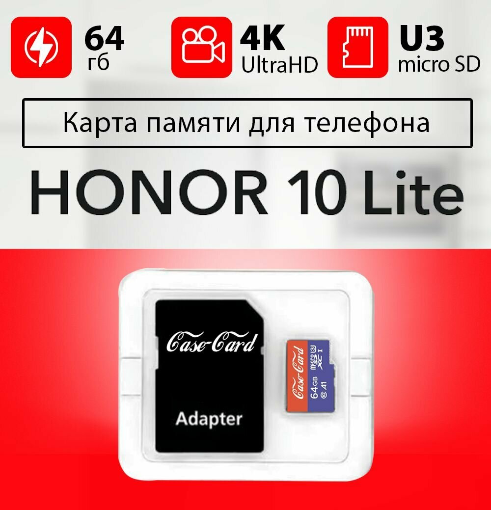 Карта памяти для HONOR 20 / флешка подходит для телефона хонор 20 64 гб Case Card 10 U3 V30 Ultra HD