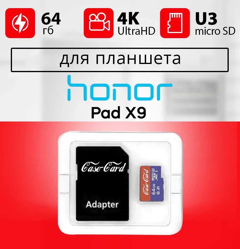 Купить Карта памяти для планшета Honor pad x9 / флешка подходит для Хонор пад х9 64 гб Case Card 10 U3 V30 Ultra HD