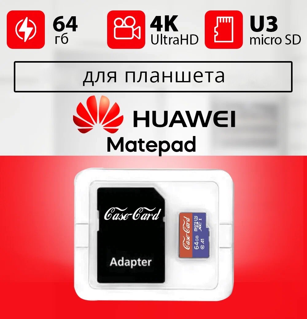 Карта памяти для планшета Honor pad 9 / флешка подходит для Хонор пад 9 64 гб Case Card 10 U3 V30 Ultra HD