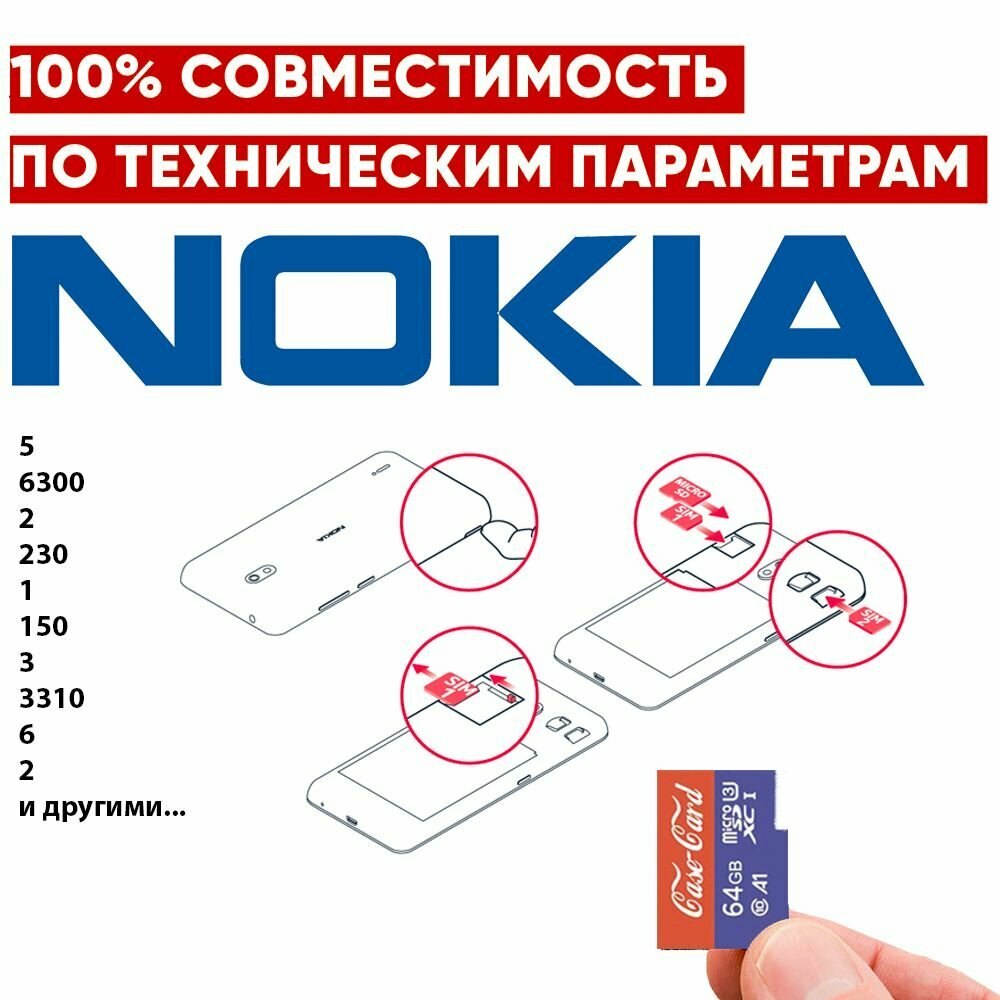 Купить Карта памяти для телефона Нокиа 5, 6300, 2, 230, 1, 150, 3, 6, 2 / флешка Nokia 64 гб класс 10 U3 V30 Ultra HD
