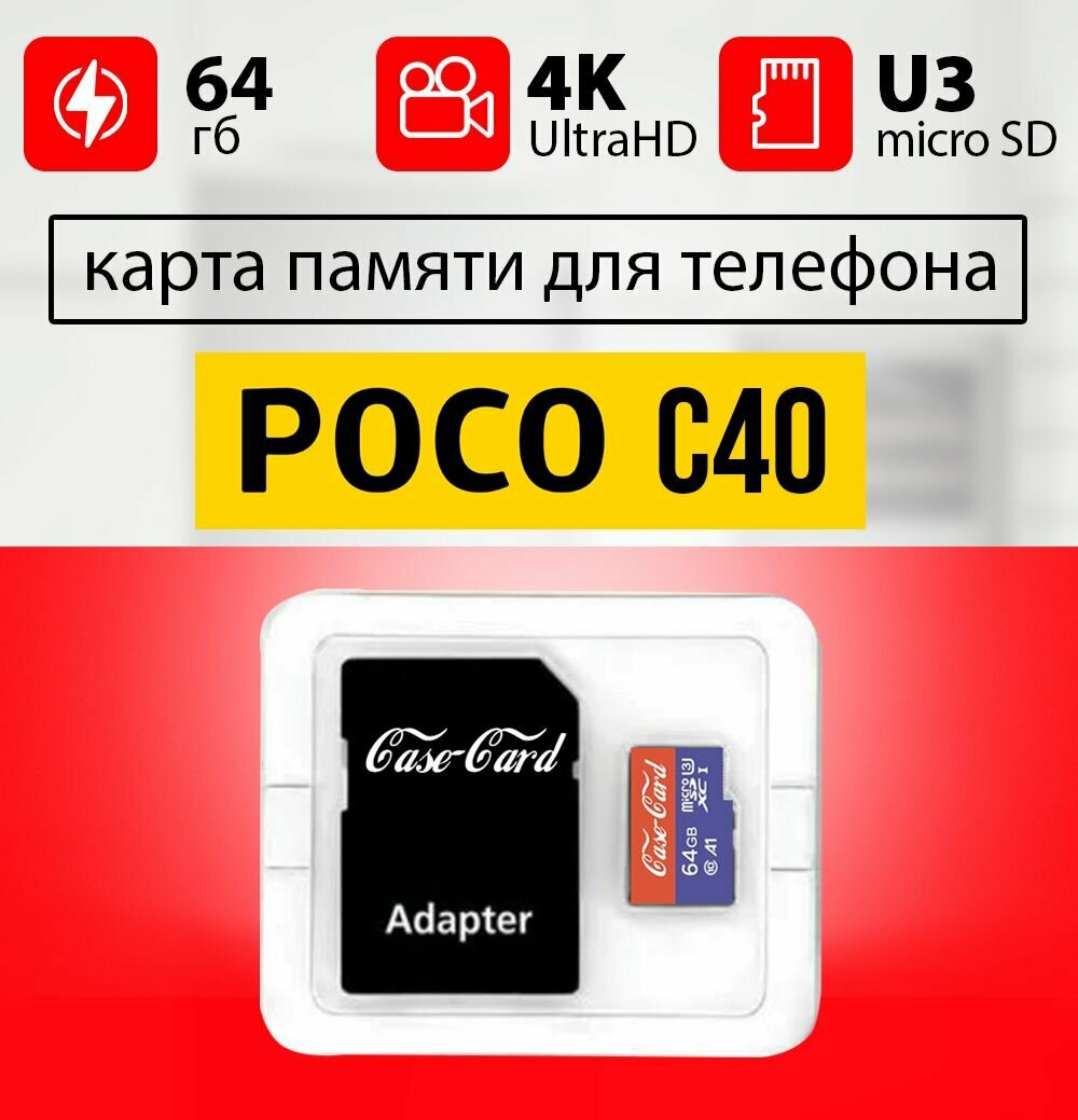 Купить Карта памяти для POCO с40 / флешка подходит для телефона поко с40 64 гб Case Card 10 U3 V30 Ultra HD