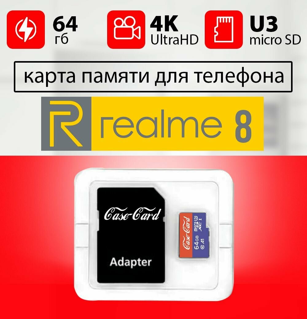 Купить Карта памяти для REALME 8/ флешка подходит для телефона реалми 8 (риалми 8) 64 гб Case Card 10 U3 V30 Ultra HD
