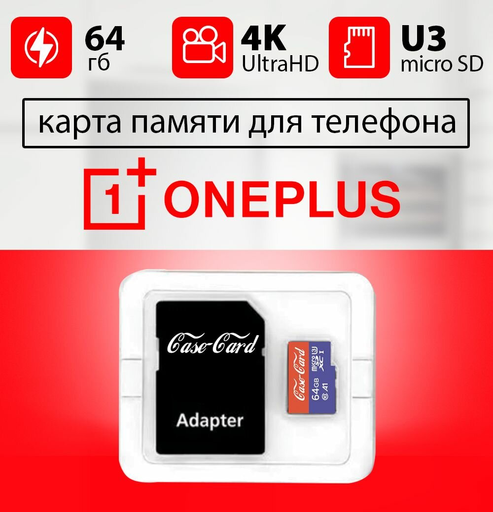 Купить Карта памяти для ONEPLUS / флешка подходит для телефона ONEPLUS 64 гб Case Card 10 U3 V30 Ultra HD