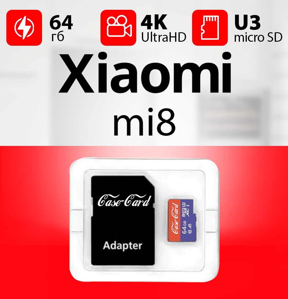 Купить Карта памяти для XIAOMI mi 8 / флешка подходит для телефона сяоми Ми 8 64 гб Case Card 10 U3 V30 Ultra HD