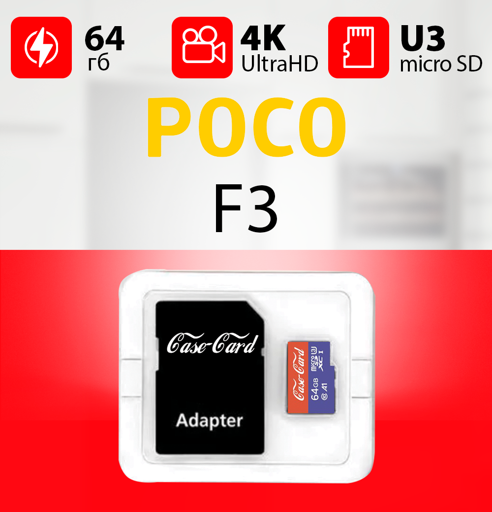 Купить Карта памяти для POCO F3 / флешка подходит для телефона поко Ф3 64 гб Case Card 10 U3 V30 Ultra HD