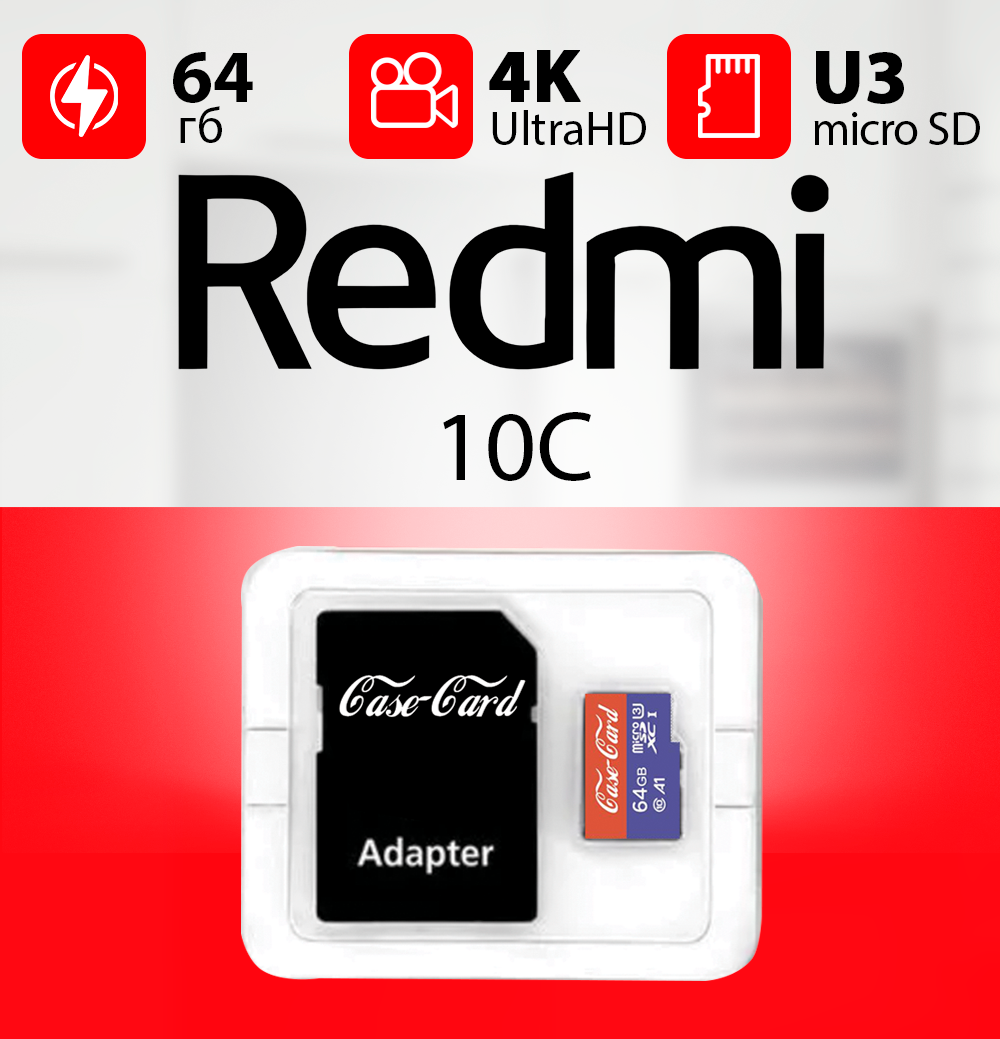 Купить Карта памяти для REDMI 10c / флешка подходит для телефона Редми 10с 64 гб Case Card 10 U3 V30 Ultra HD