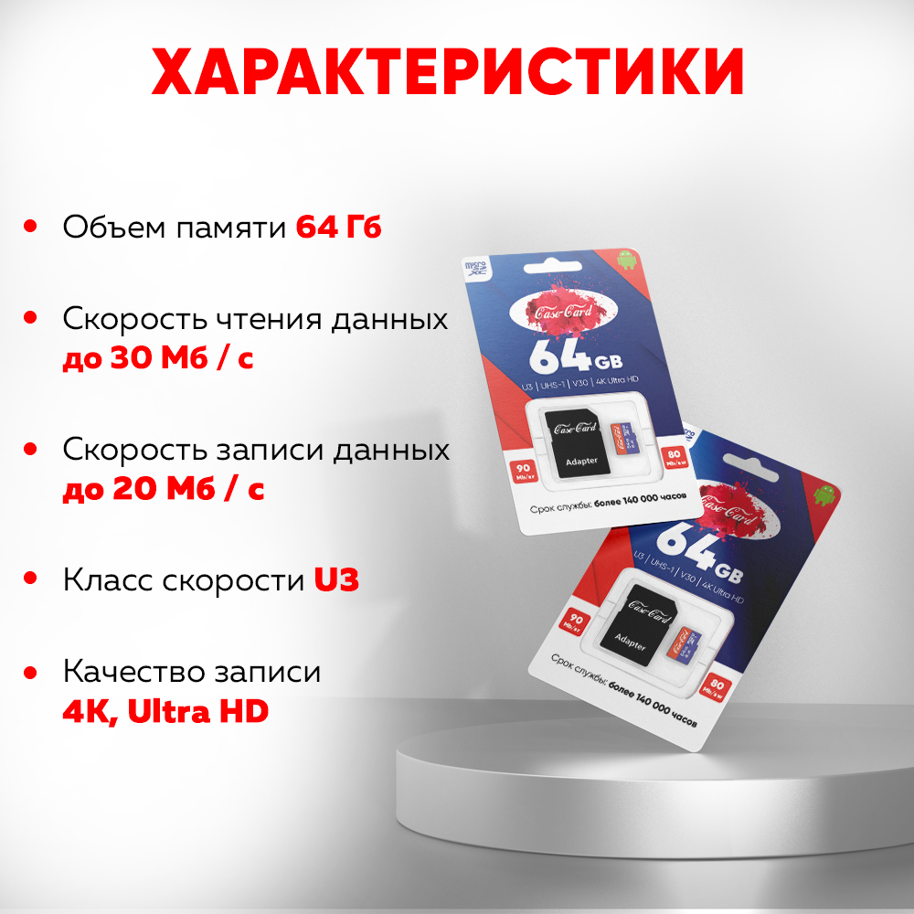 Купить Карта памяти для планшета Dexp / флешка подходит для Dexp 64 гб Case Card 10 U3 V30 Ultra HD