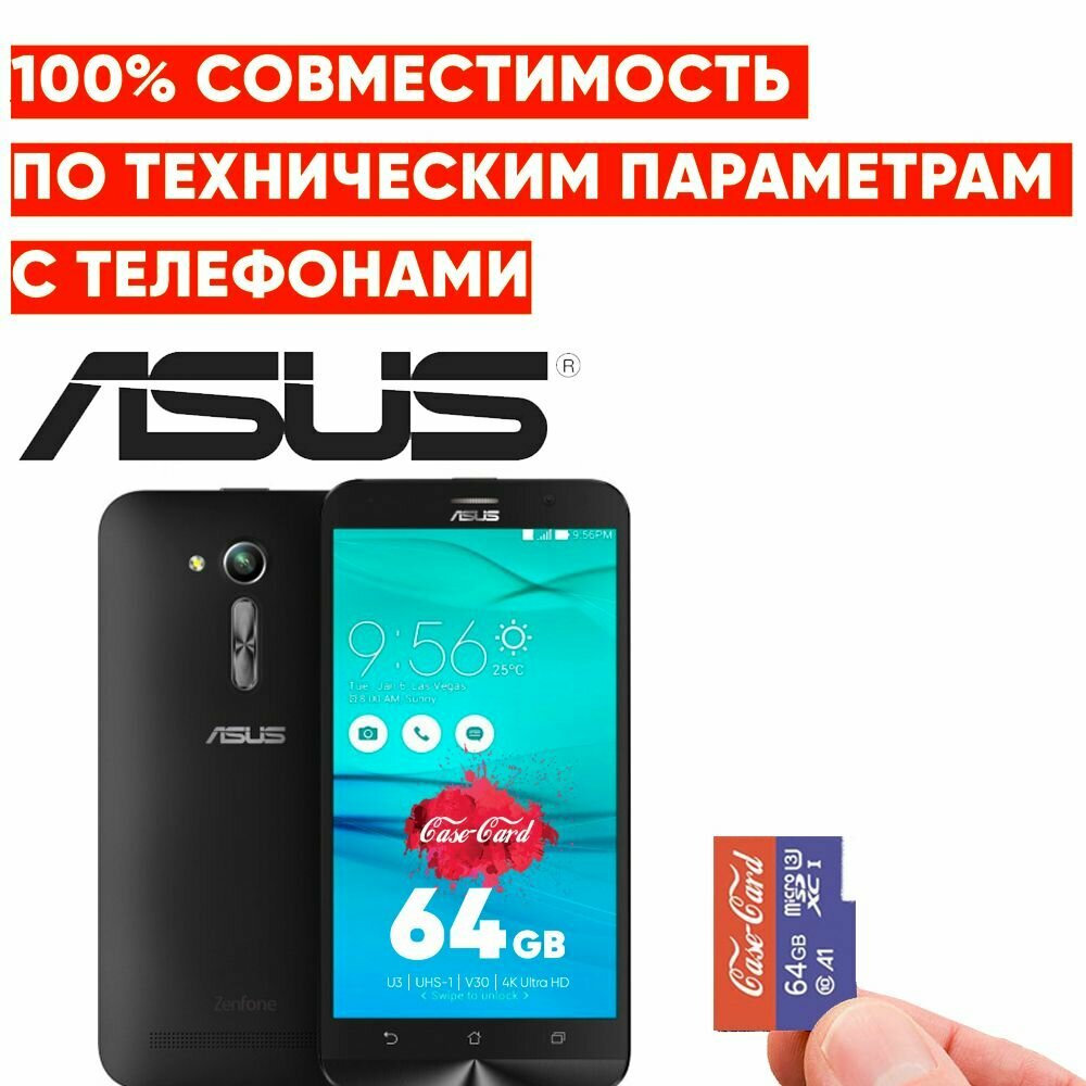 Купить Карта памяти для ASUS / флешка подходит для телефона асус 64 гб Case Card 10 U3 V30 Ultra HD