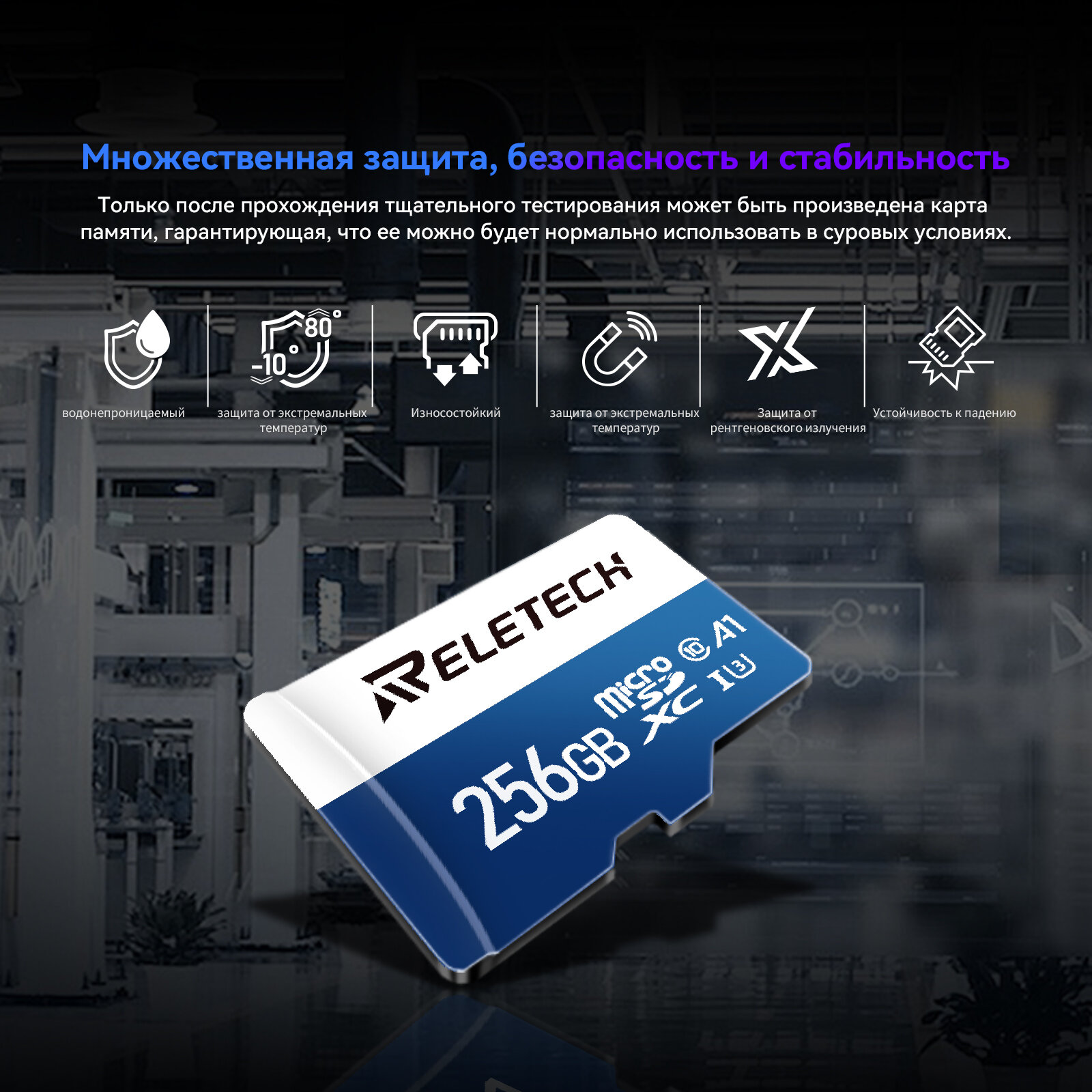 Купить Карта памяти Reletech micro SD A1 256ГБ Для Цифровая камера, камера наблюдения, дрон, регистратор вождения, синий и белый