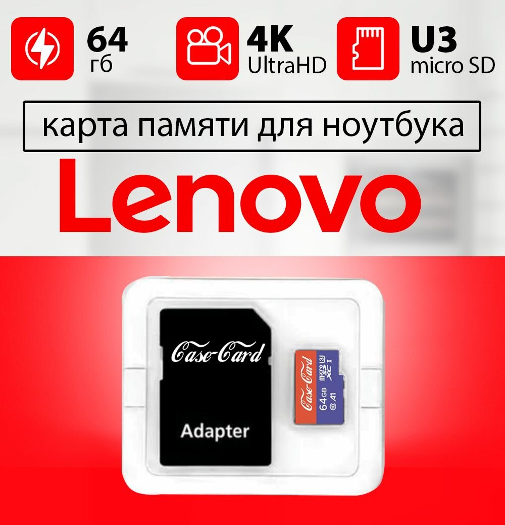 Купить Карта памяти для ноутбука LENOVO / флешка подходит для ноутбука леново 64 гб Case Card 10 U3 V30 Ultra HD
