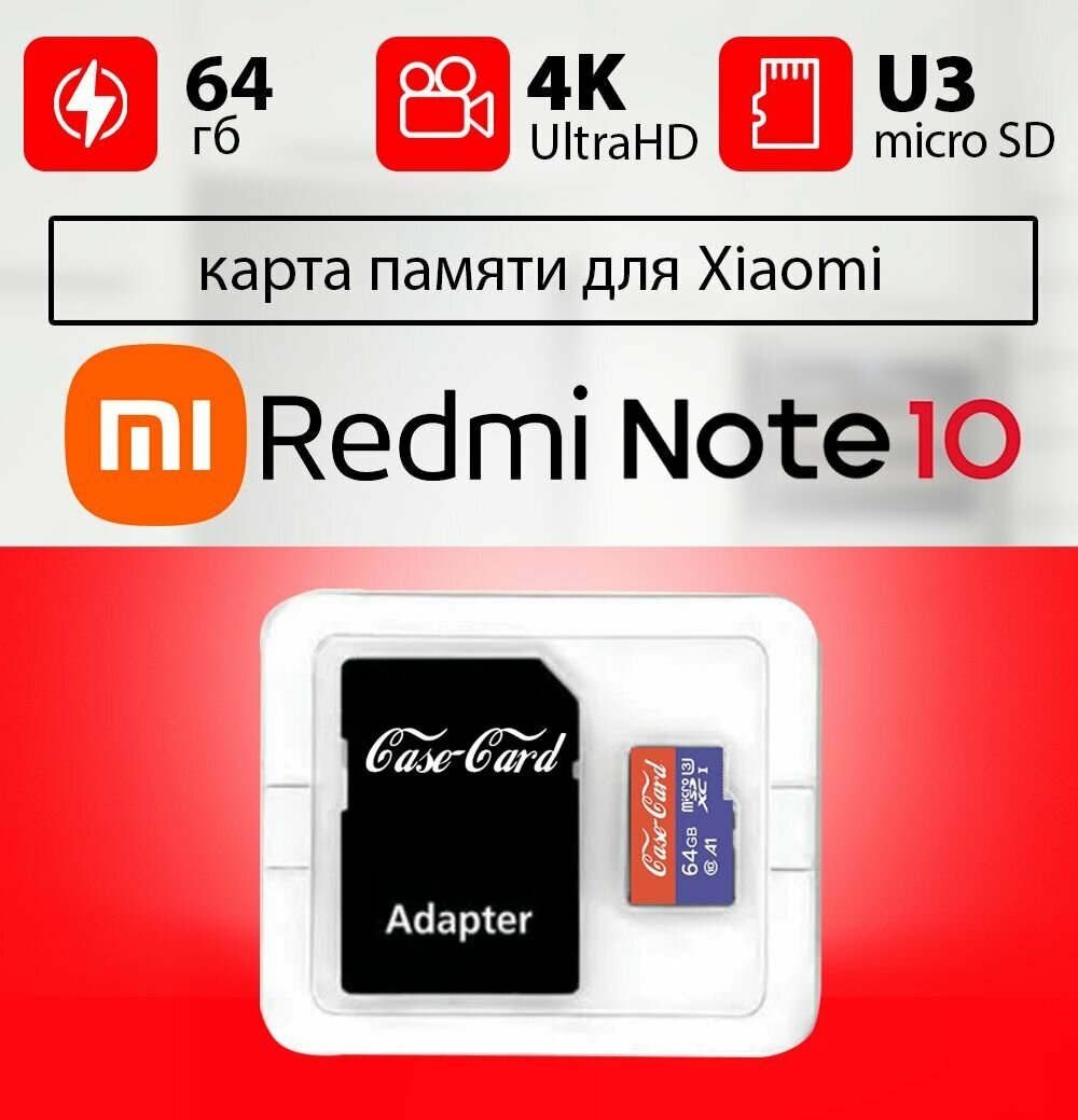 Купить Карта памяти для xiaomi redmi note 10 / флешка для телефона сяоми 64 гб класс 10 U3 V30 UHS-1 запись 4K Ultra HD