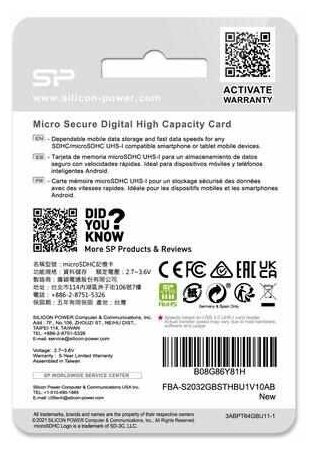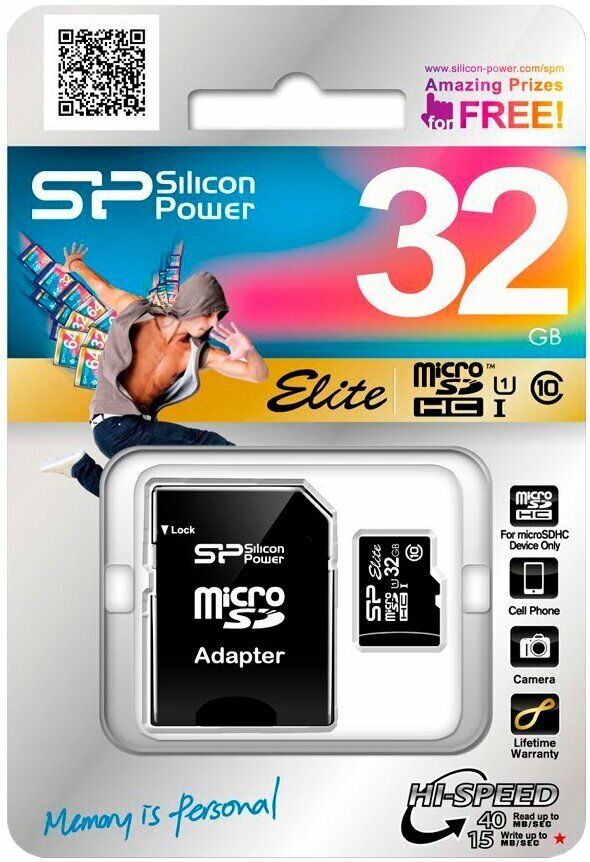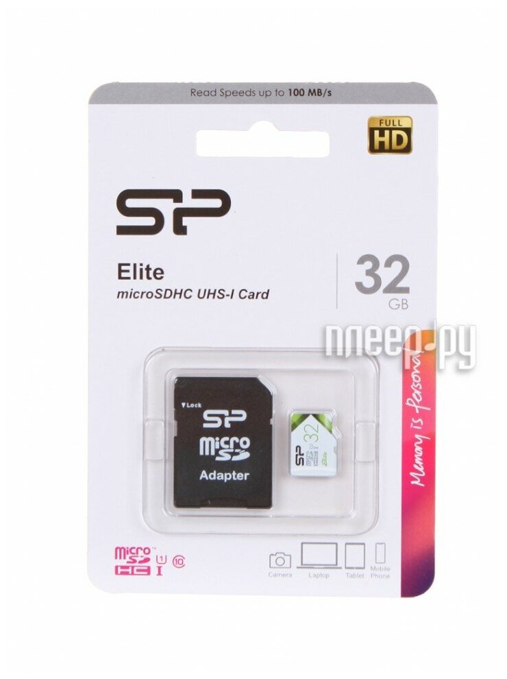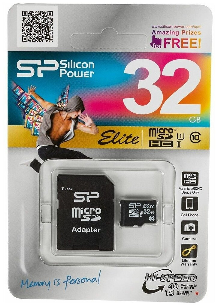 Карта памяти 32Gb - Silicon Power Elite MicroSDHC Class 10 UHS-I SP032GBSTHBU1V21SP с адаптером SD (Оригинальная!) интересное: