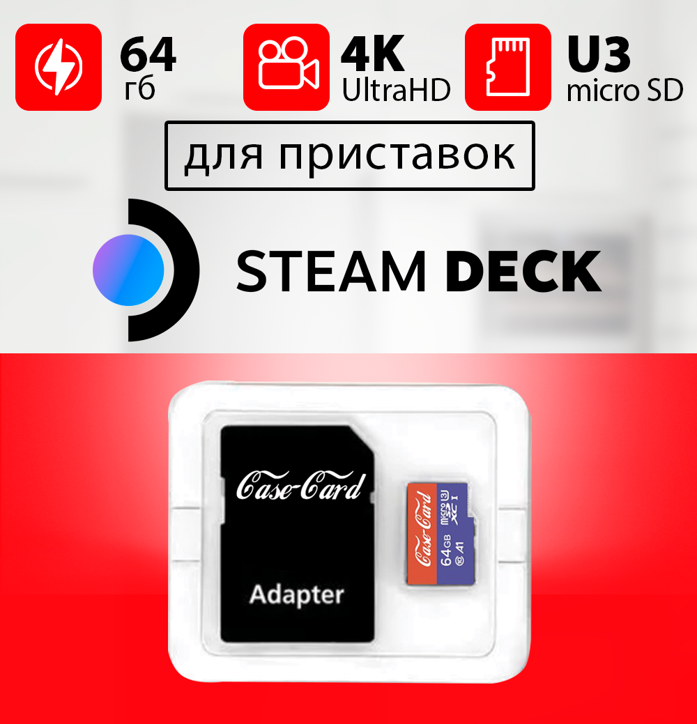 Купить Карта памяти для Steam Deck / флешка подходит для Steam Deck 64 гб Case Card 10 U3 V30 Ultra HD