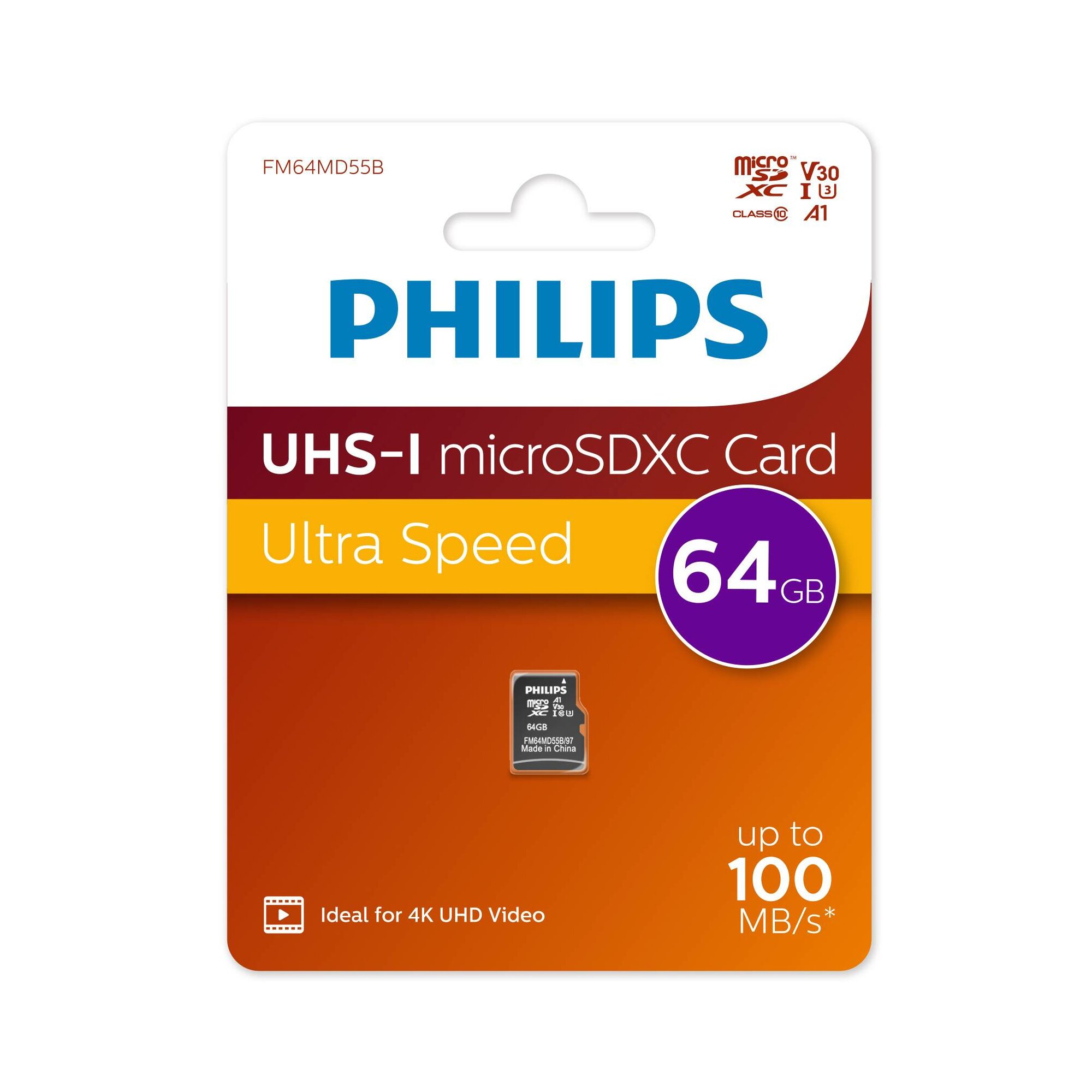 Купить Флеш карта microSD 64GB PHILIPS High Speed microSDHC Class UHS-I U3, V30, A1, 100MB/s