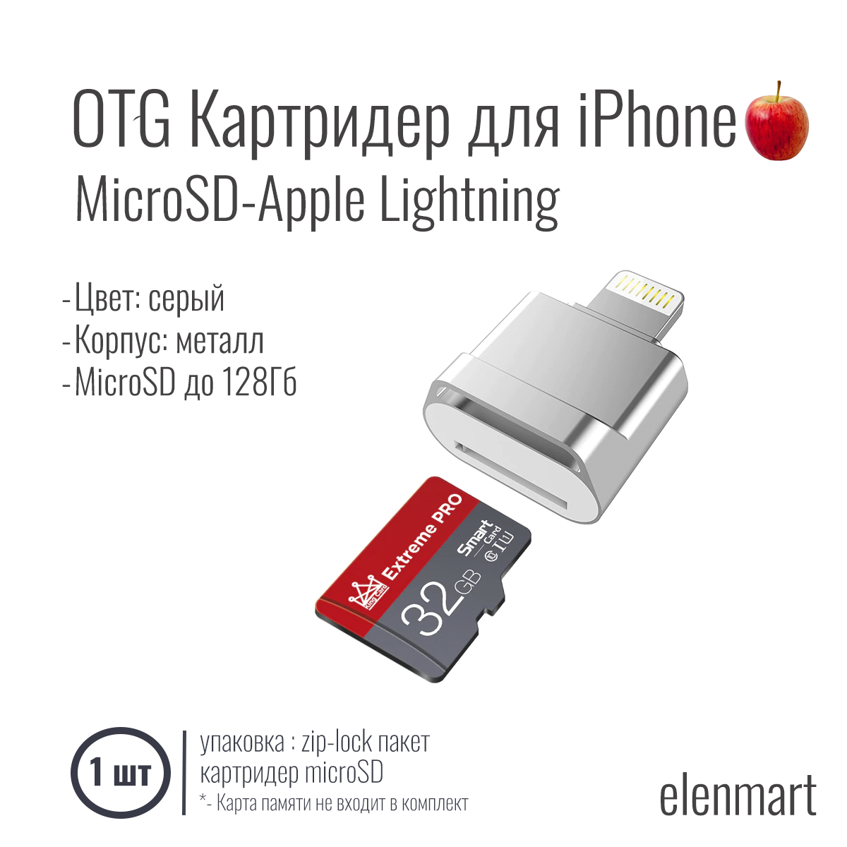 OTG картридер MicroSD для Apple iPhone, iOS 13+, серебристый интересное: