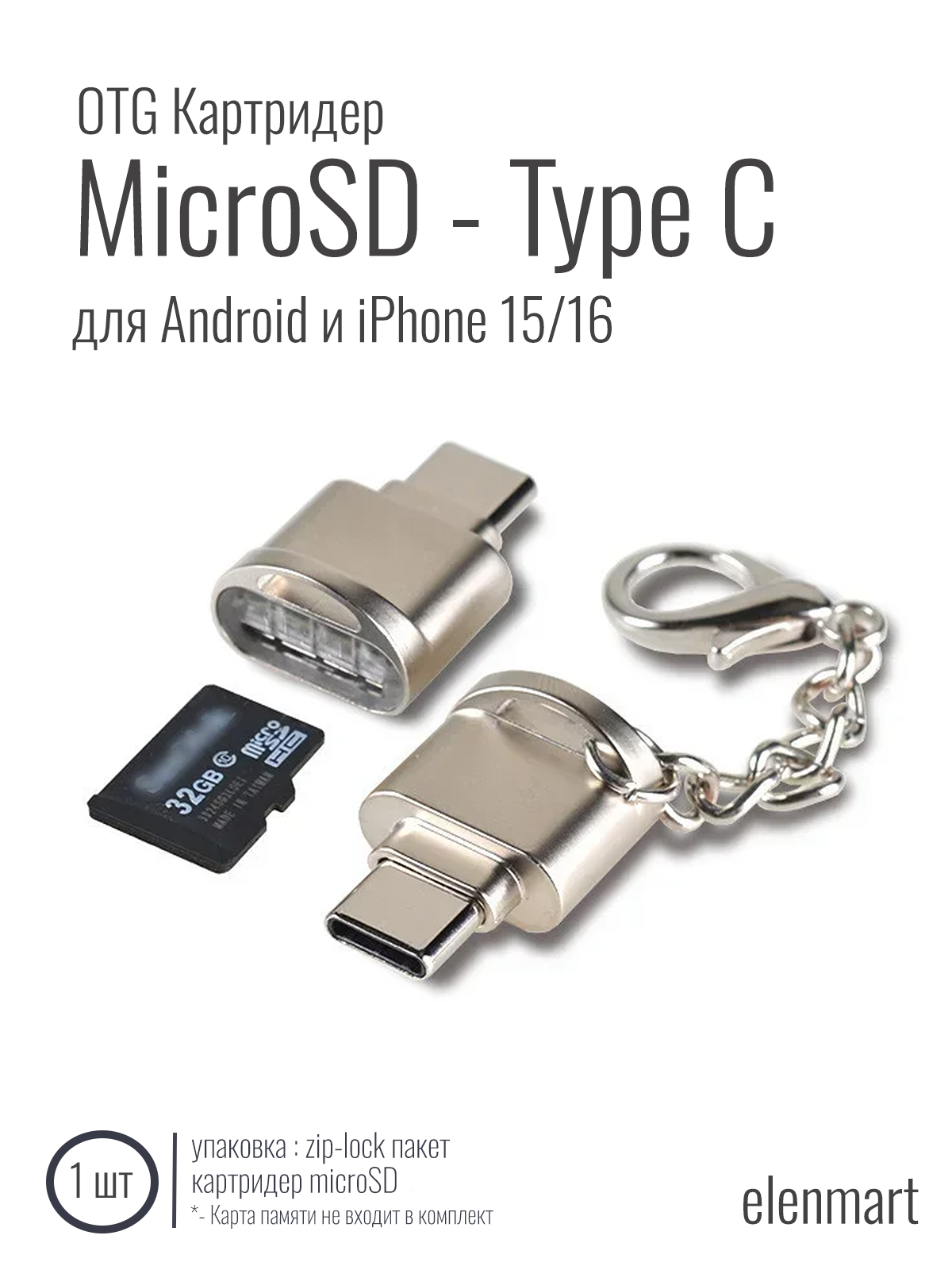 Купить Картридер Type-C(папа) microSD, Android, iPhone 15 Pro и новее, серебристый