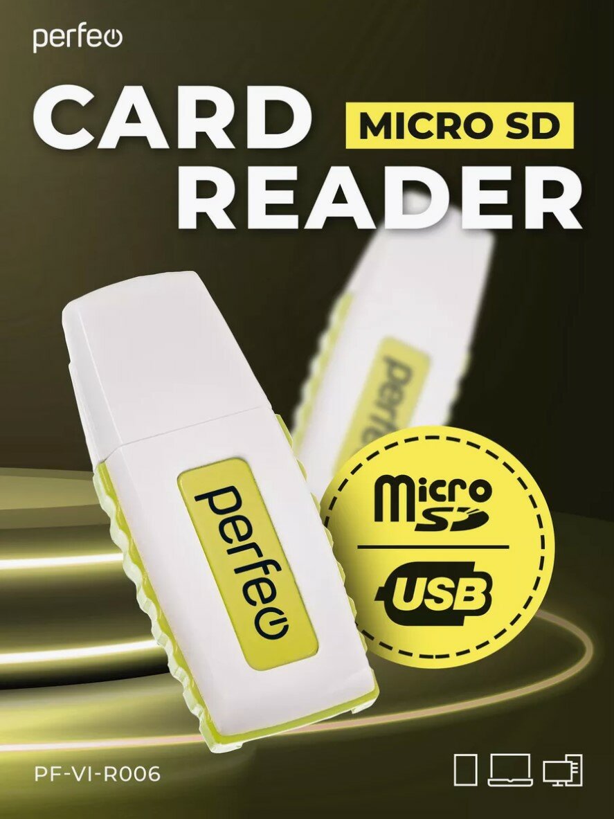 Кардридер SD карт Perfeo, USB 2.0 адаптер, желтый интересное: