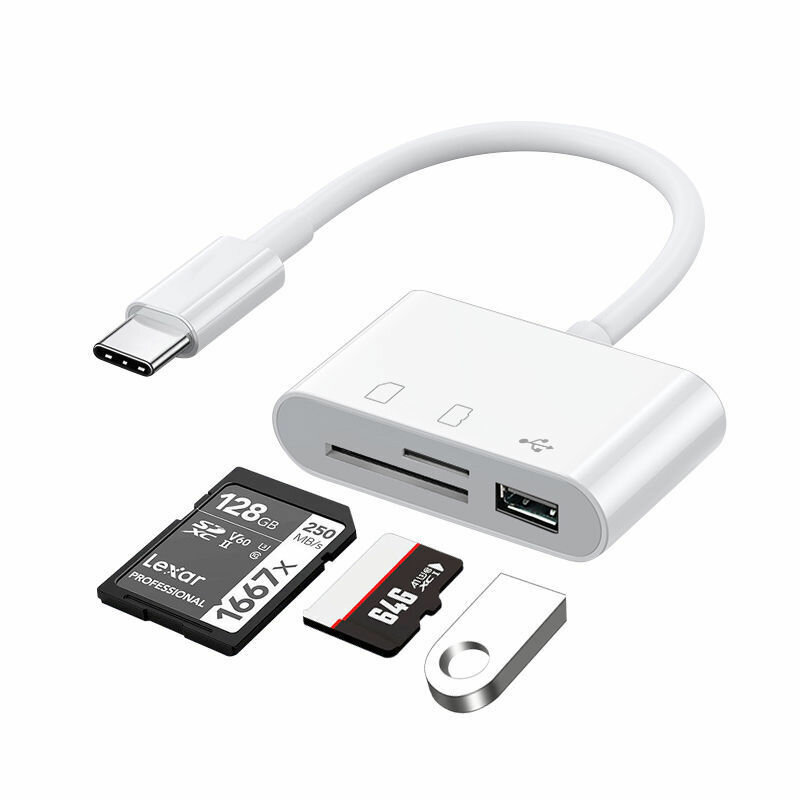 Купить Кард-ридер Liangke "три в одном", с кабелем, для Android, пластик, белый