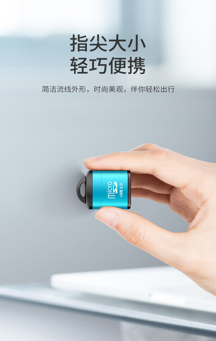 Купить Устройство чтения карт памяти, алюминиевый корпус, с цепочкой, USB2.0, T-Flash, зеленый