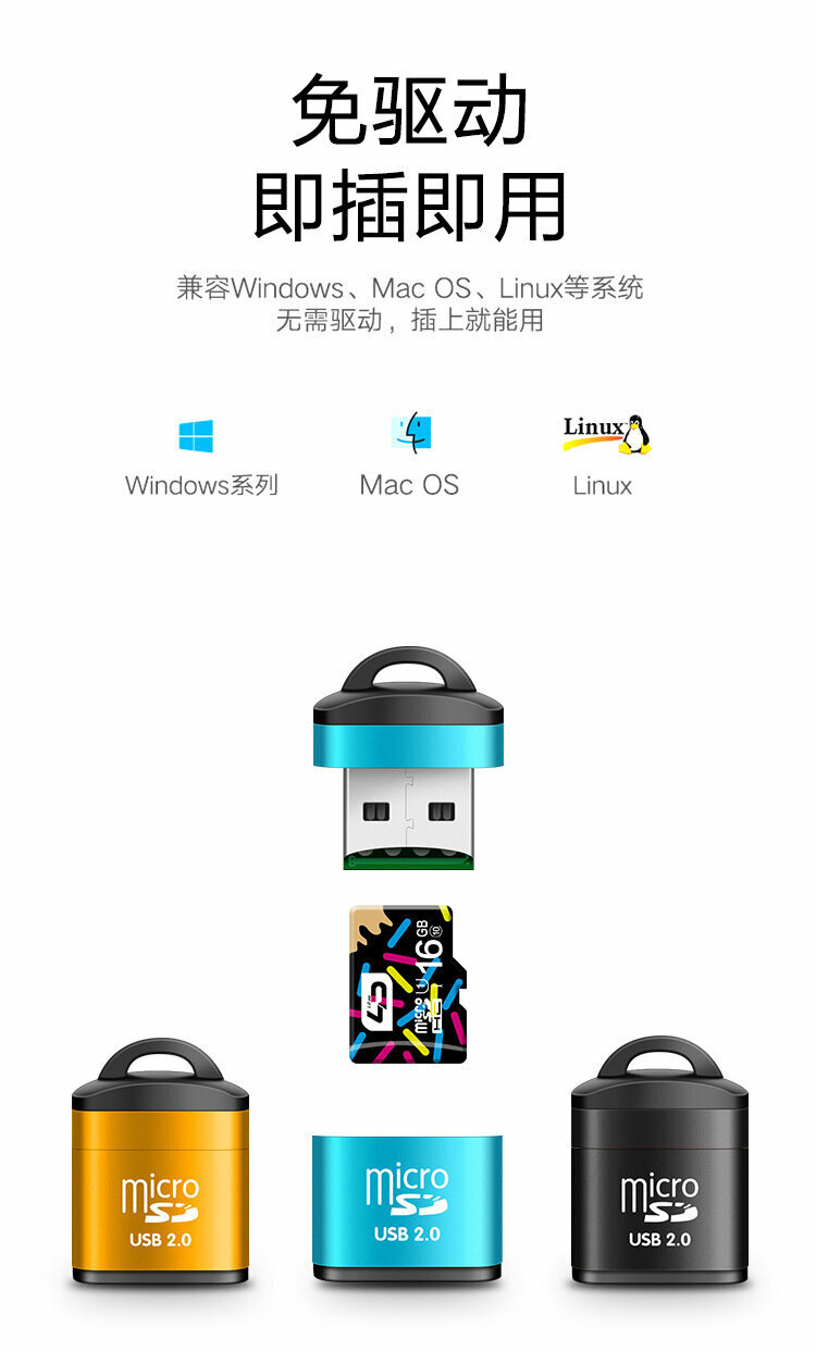 Устройство чтения карт памяти, алюминиевый корпус, с цепочкой, USB2.0, T-Flash, зеленый интересное: