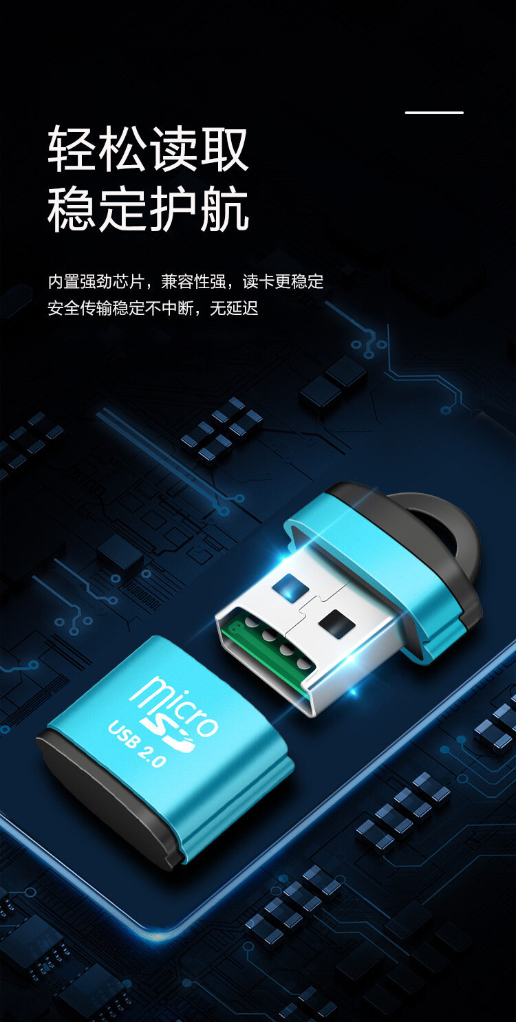 Устройство чтения карт памяти, алюминиевый корпус, с цепочкой, USB2.0, T-Flash, черный