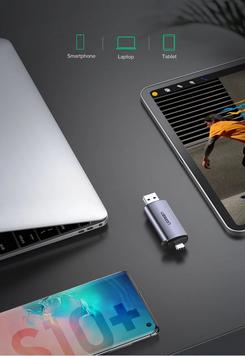 UGREEN Картридер USB 3.0 и Type C для SD, Micro SD, TF, 2in1 Alu-alloy shell интересное: