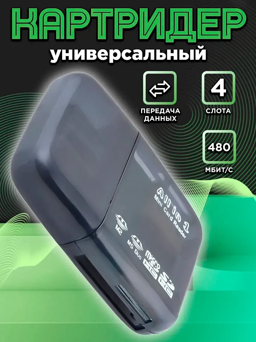 Картридер microsd card reader usb переходник для флешек, черный интересное: