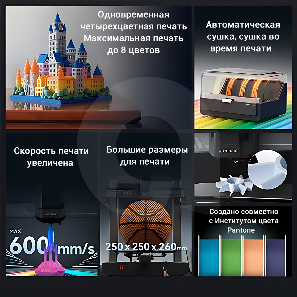 3D принтер Anycubic Kobra 3 combo ,600mm/s, расширенная 8-ми цветная печать интересное: