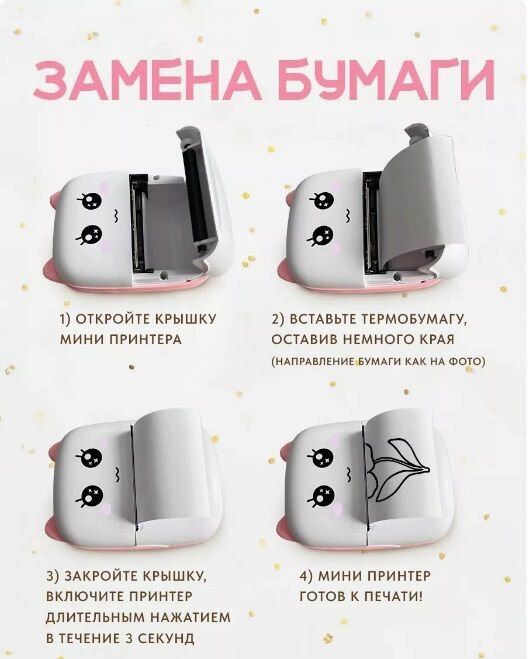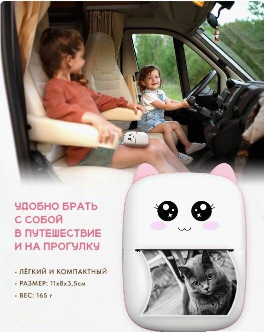 Мини Принтер с Чехлом и Тамагочи, Беспроводной, Не нужно заправлять, Для наклеек Kids Club интересное: