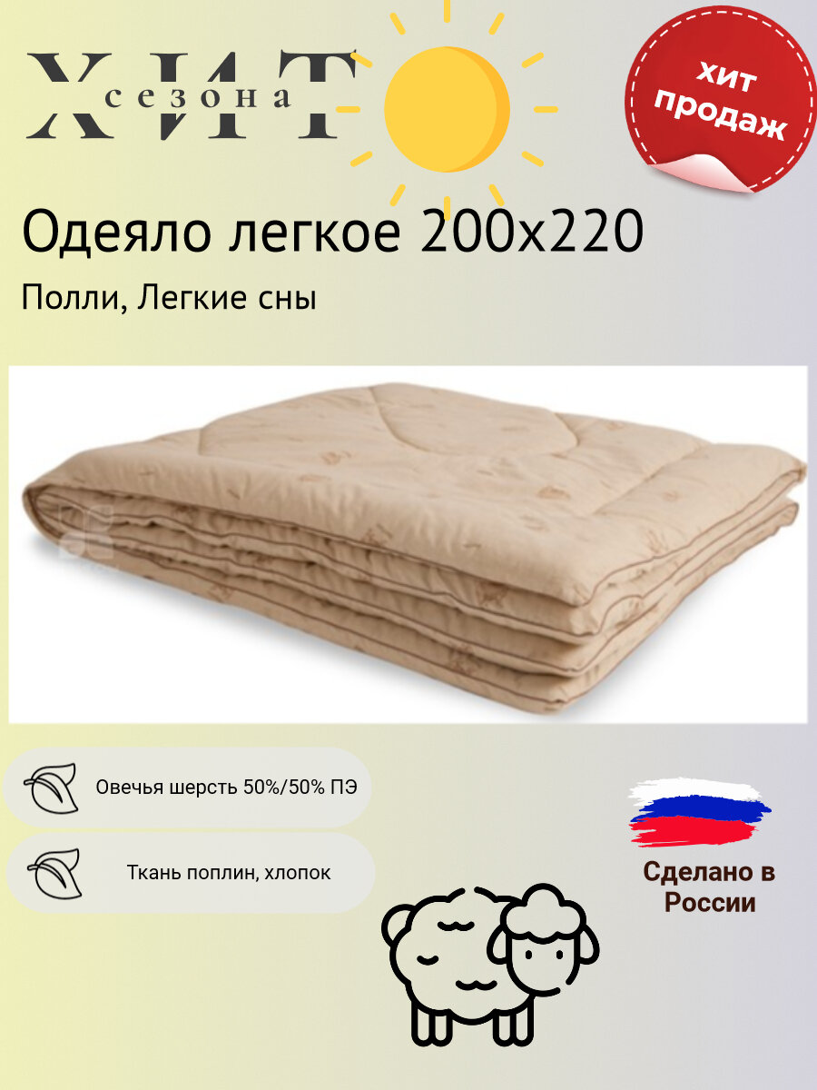 Купить Одеяло Лёгкие Сны "Полли" из овечьей шерсти. ( легкое) 200х220