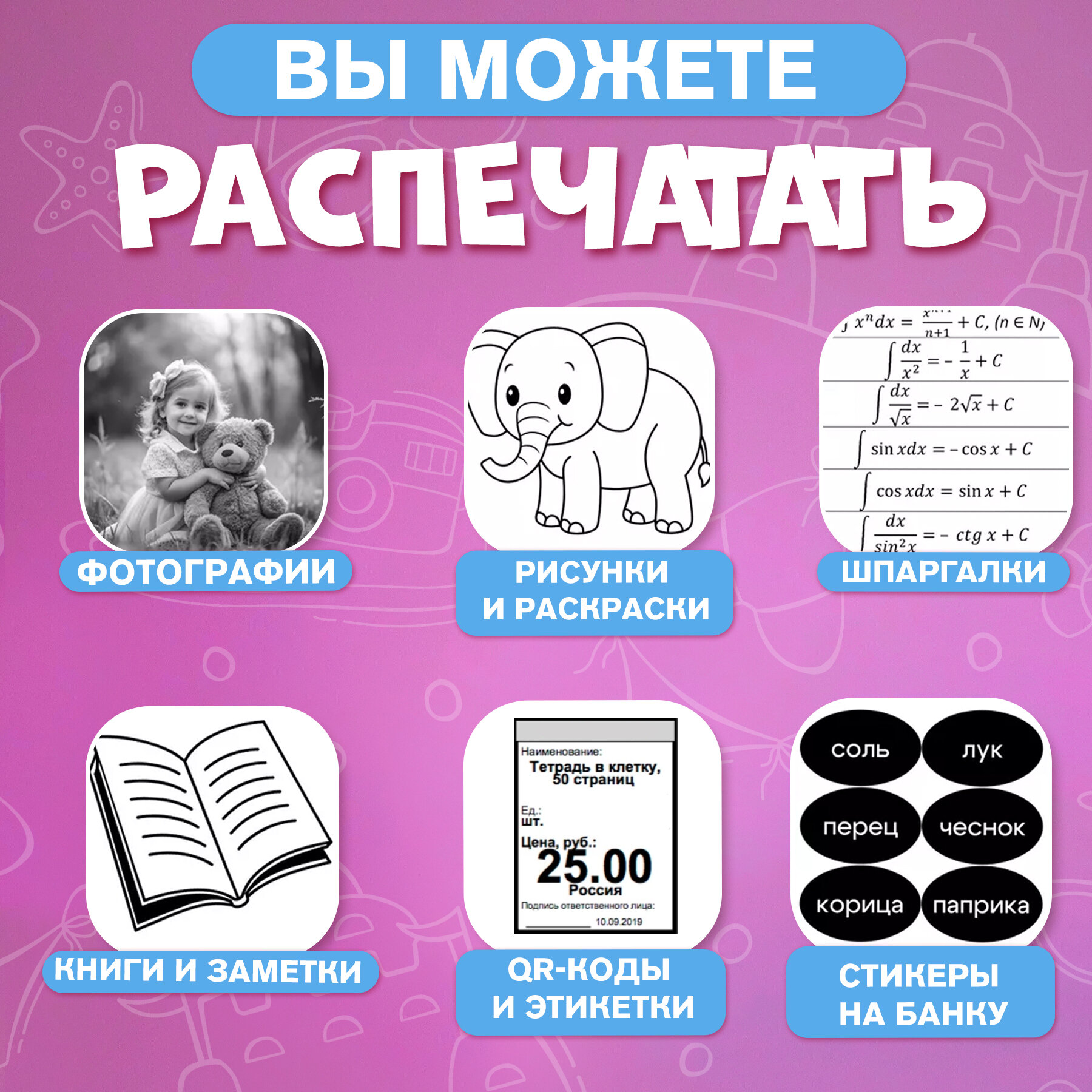 Ниже Вы можете прочитать отзывы на Мини принтер с чехлом, набором бумаги, фломастеры, самоклейка , для телефона розовый, ознакомится с подробными характеристиками, посмотреть интересные обзоры и фотографии на Мини принтер с чехлом, набором бумаги, фломастеры, самоклейка , для телефона розовый.
