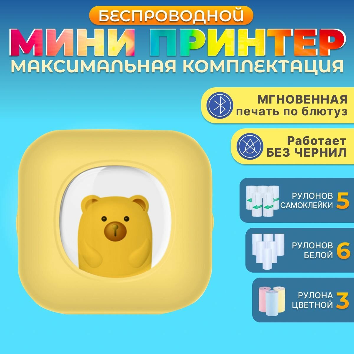 Купить Компактный мини принтер для телефона с бумагой для печати/беспроводной портативный термопринтер, желтый