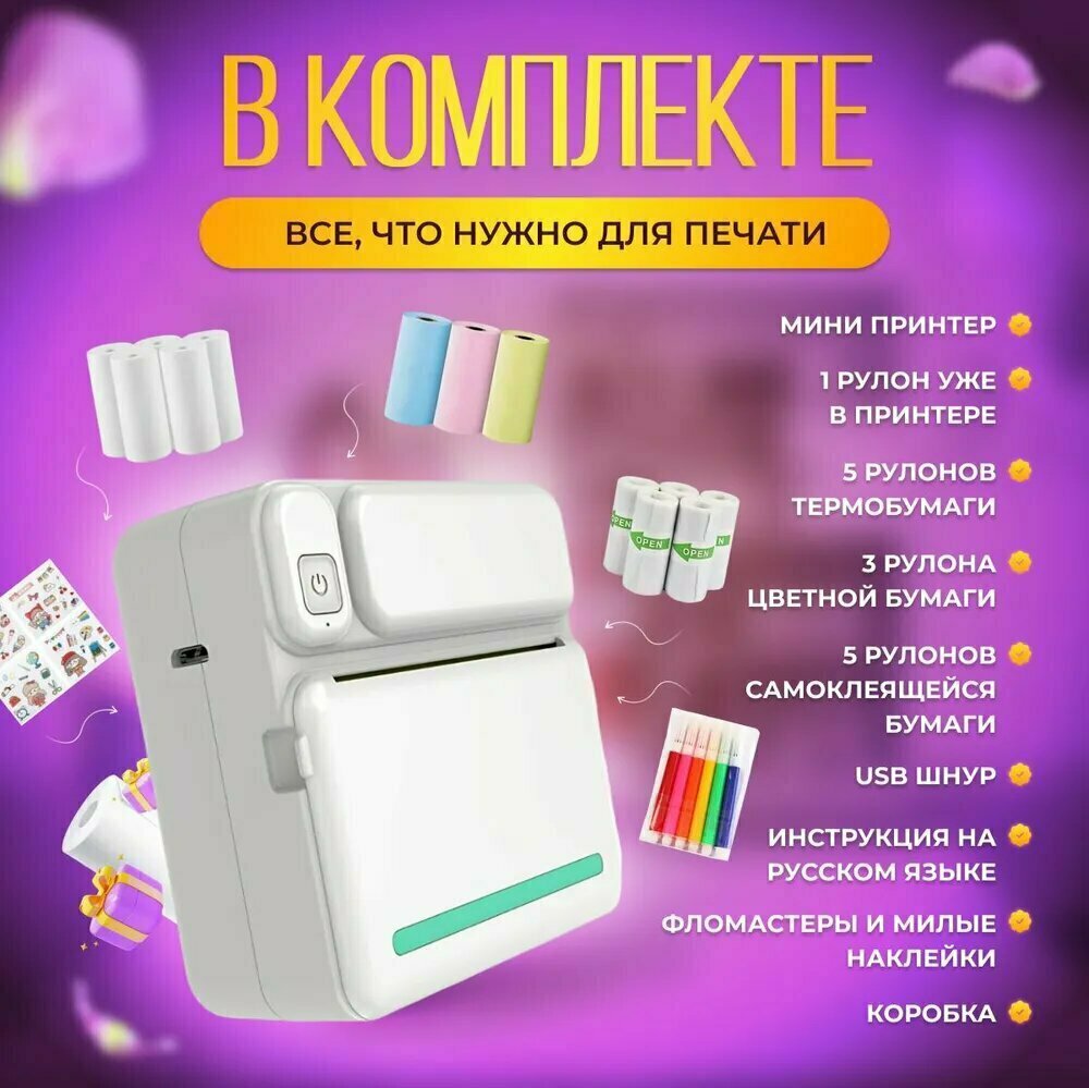 Мини-принтер C19, беспроводной, USB Type-C, черно-белый, белый интересное: