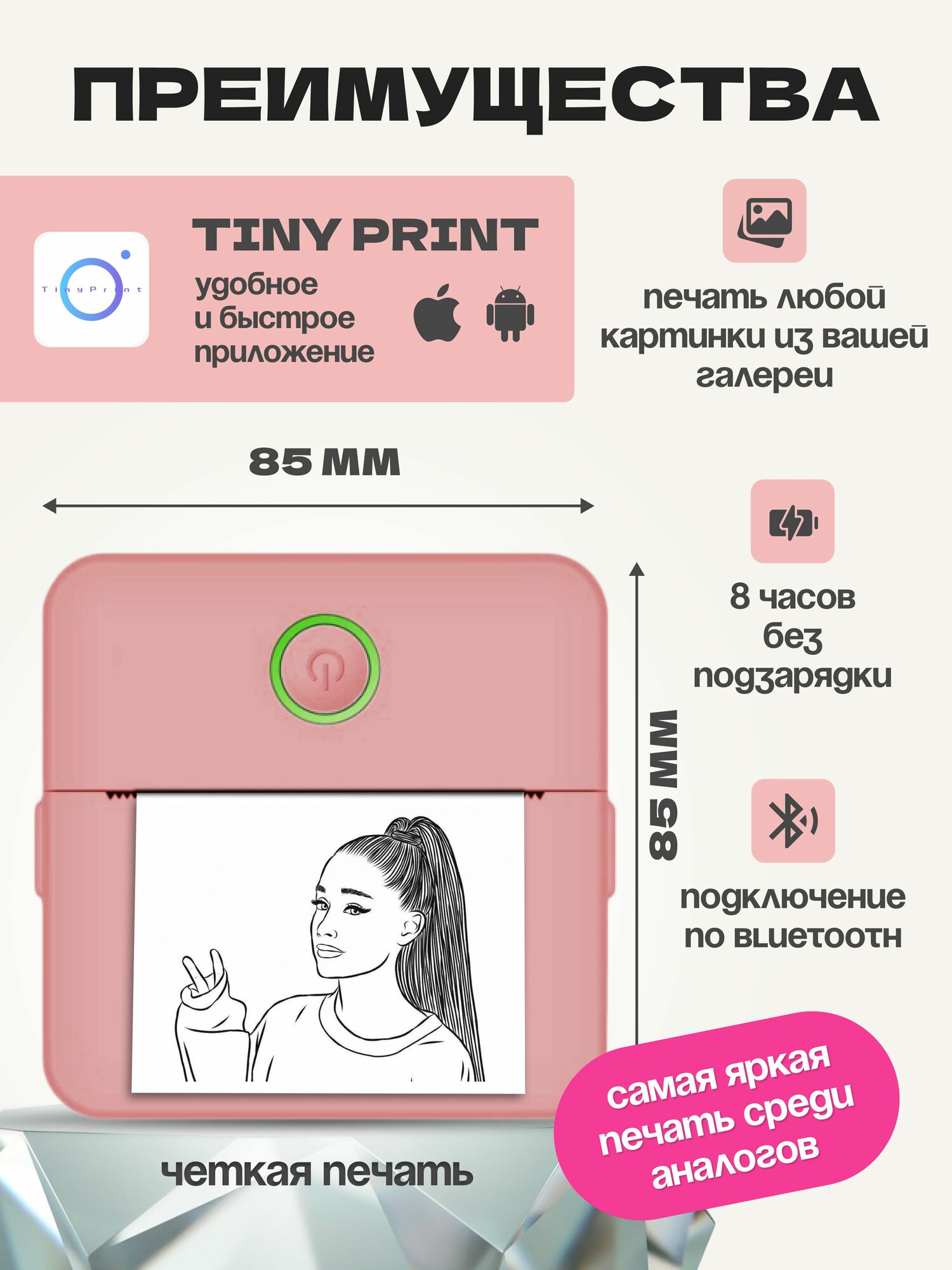 Мини принтер; термопринтер; портативный принтер А8 Pink. Большой набор.