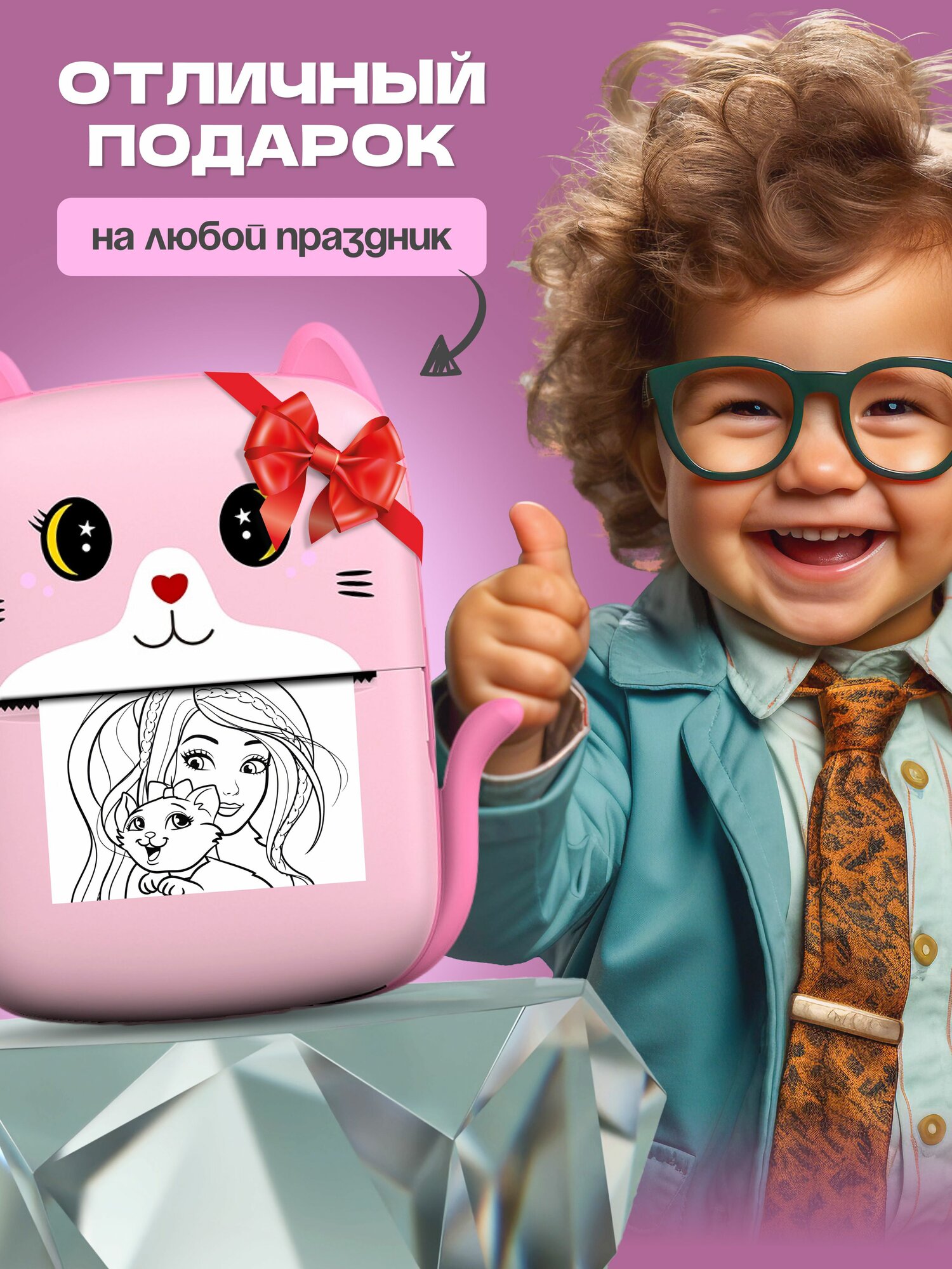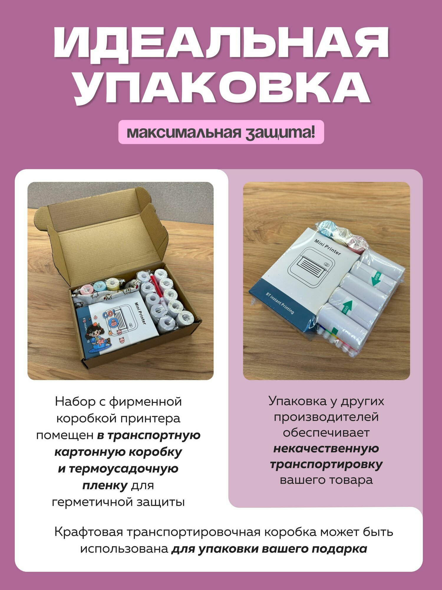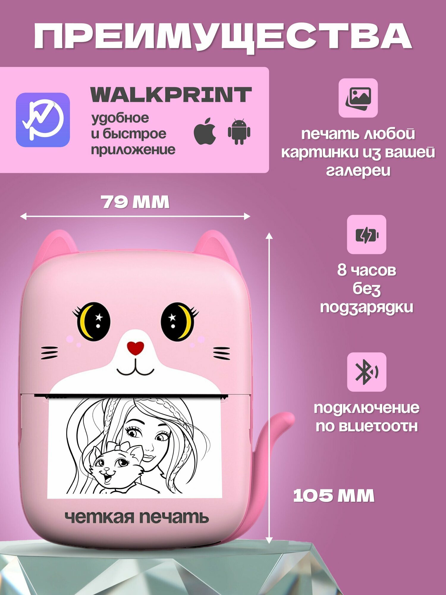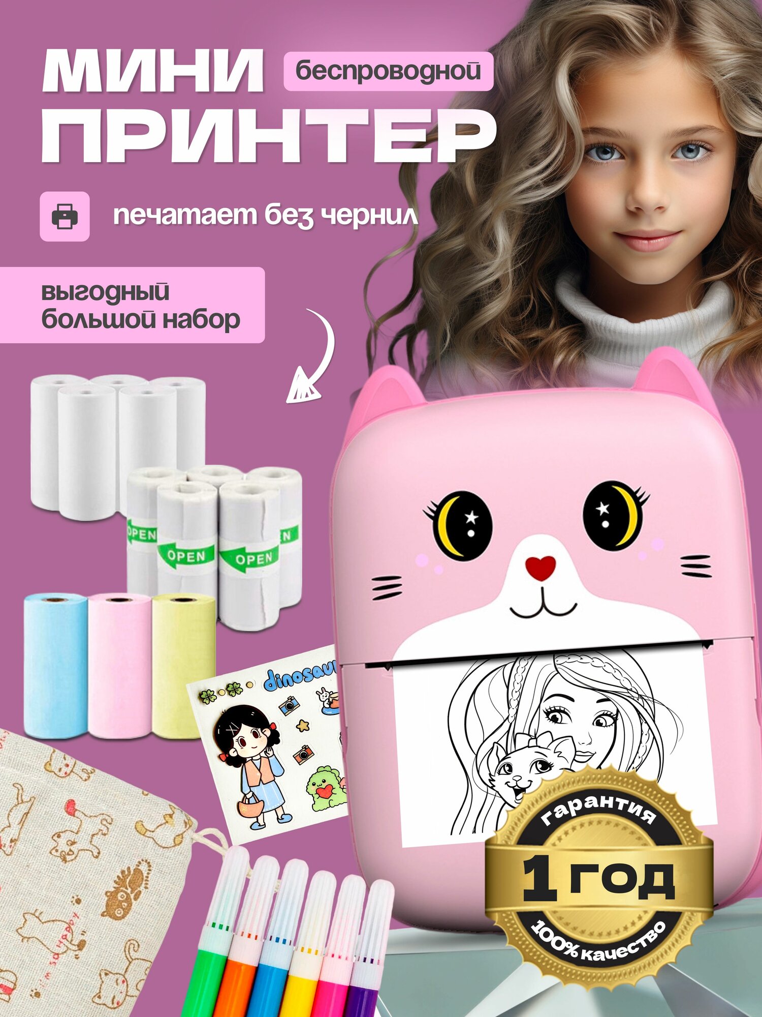 Мини принтер; термопринтер; портативный принтер А8 Pink. Большой набор. интересное: