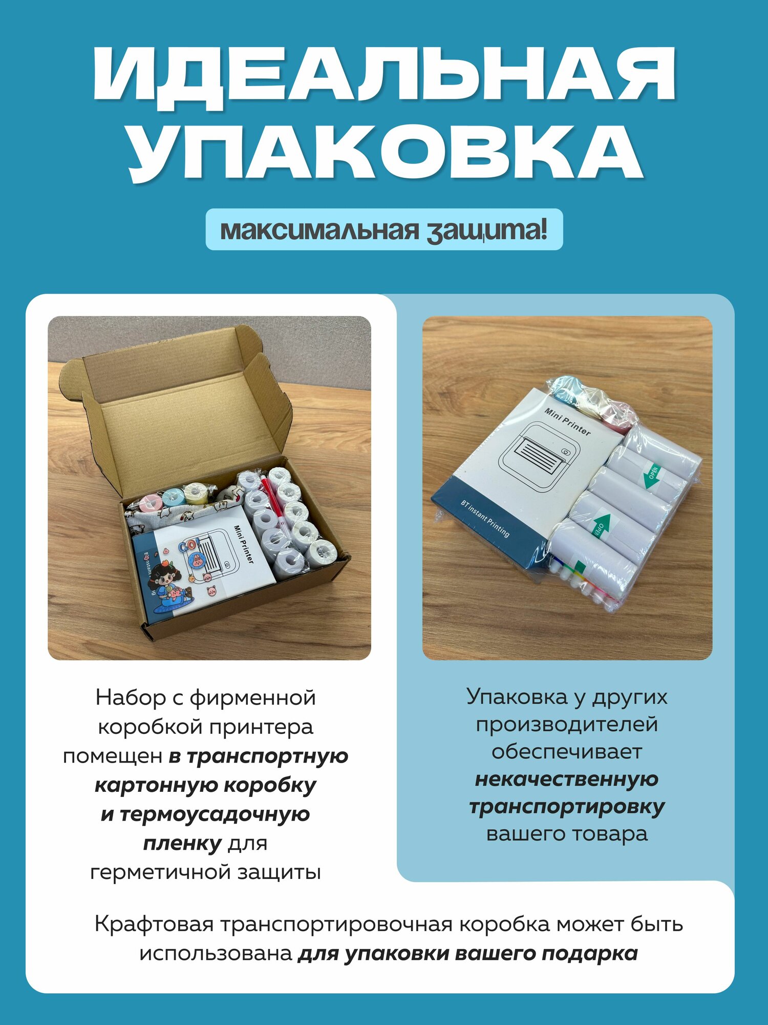 Мини принтер; термопринтер; портативный принтер А8 Blue. Большой набор. интересное: