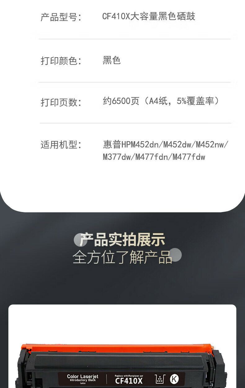 Купить Совместимый картридж CF410X для HP M452/M477, черный, 6500 страниц
