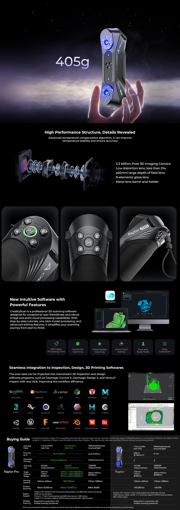 3D-принтер сканер Creality RaptorX & Scan Bridge Kit,34+7 Blue Laser Lines, Objects between 5-4000mm