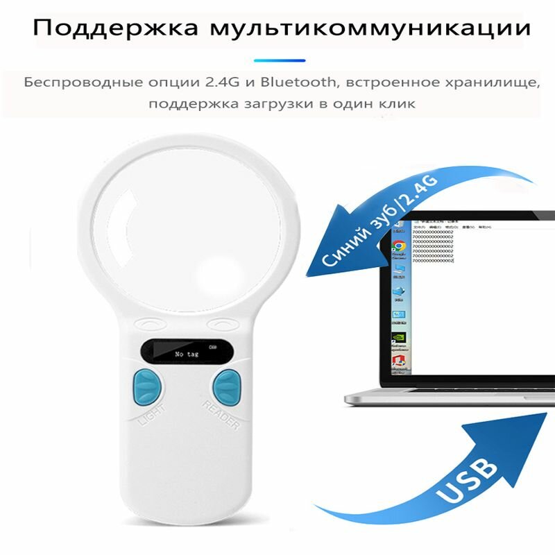 Animal ID сканер чипов для животных Функция осветительной лупы с поддержкой беспроводного USB Bluetooth интересное: