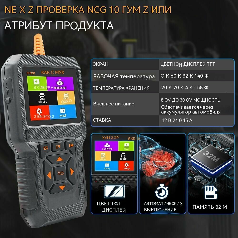 OBD2 Сканер ХУМЗОР NC610 OBD2, полная функция Обдии 2 в 1 интересное: