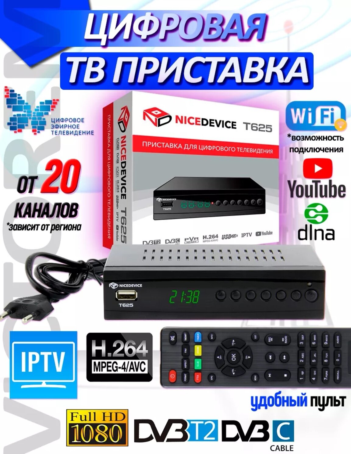 Цифровая телевизионная эфирная приставка DVB-T2/С NICEDEVICE T625 интересное: