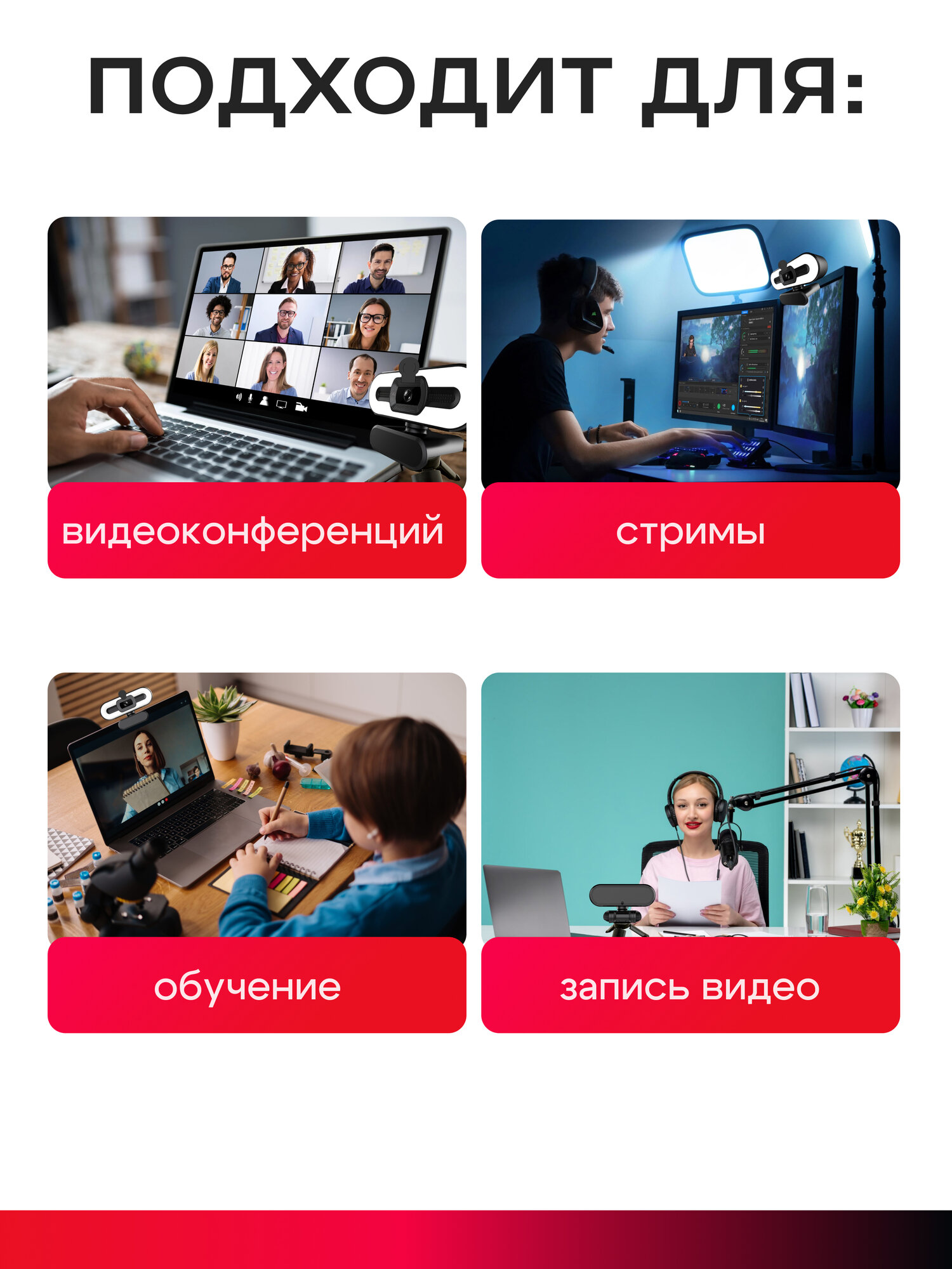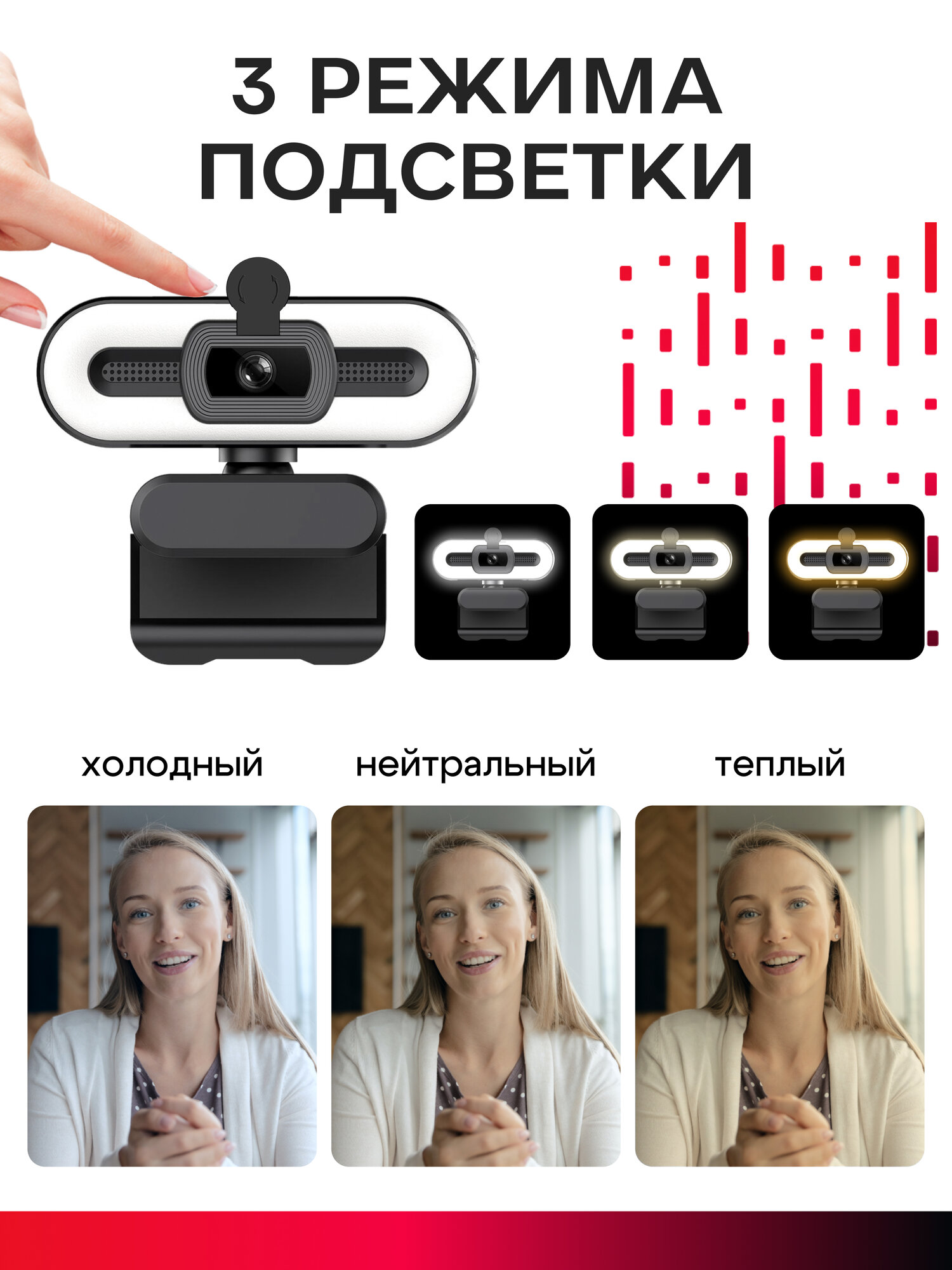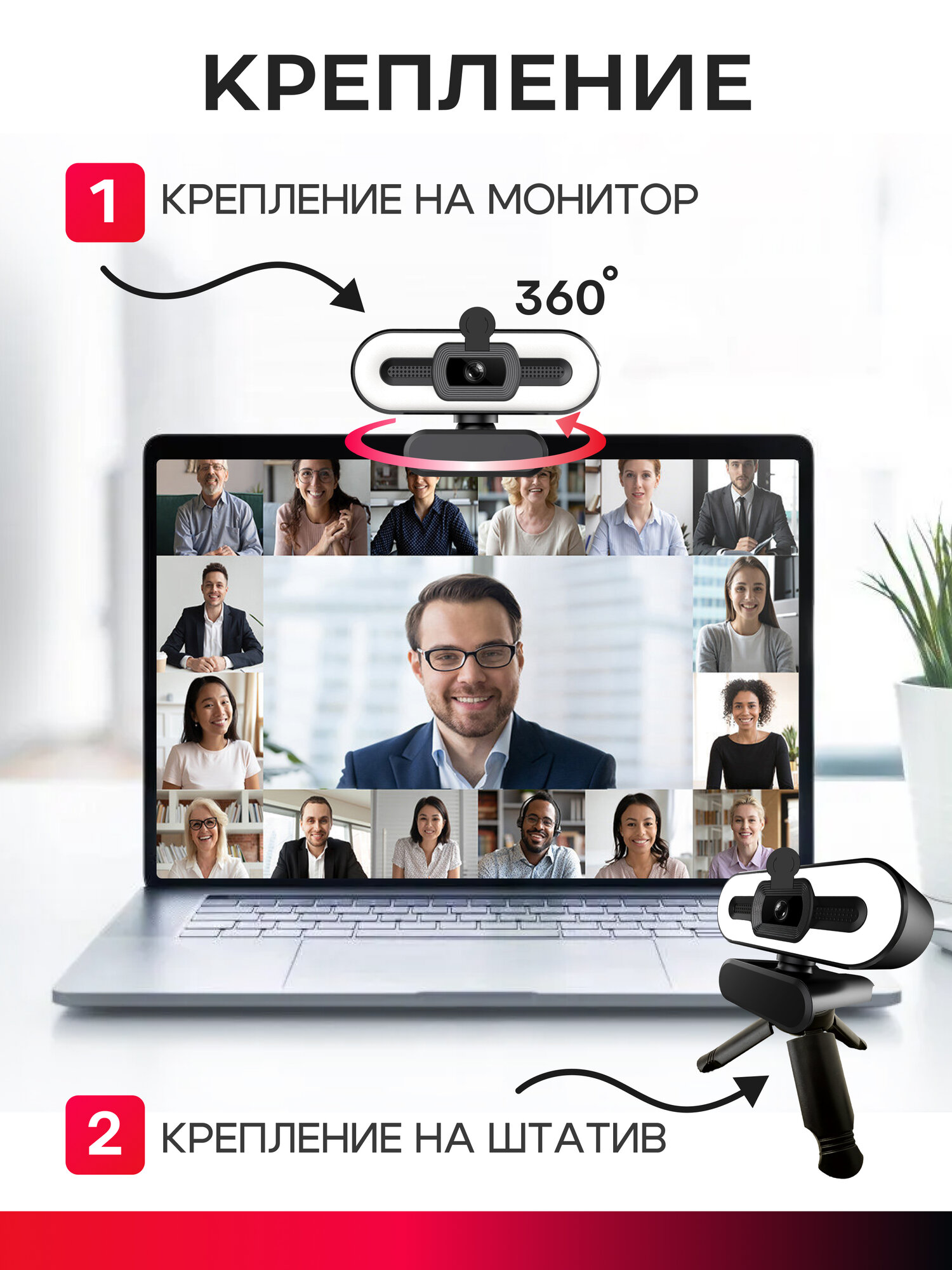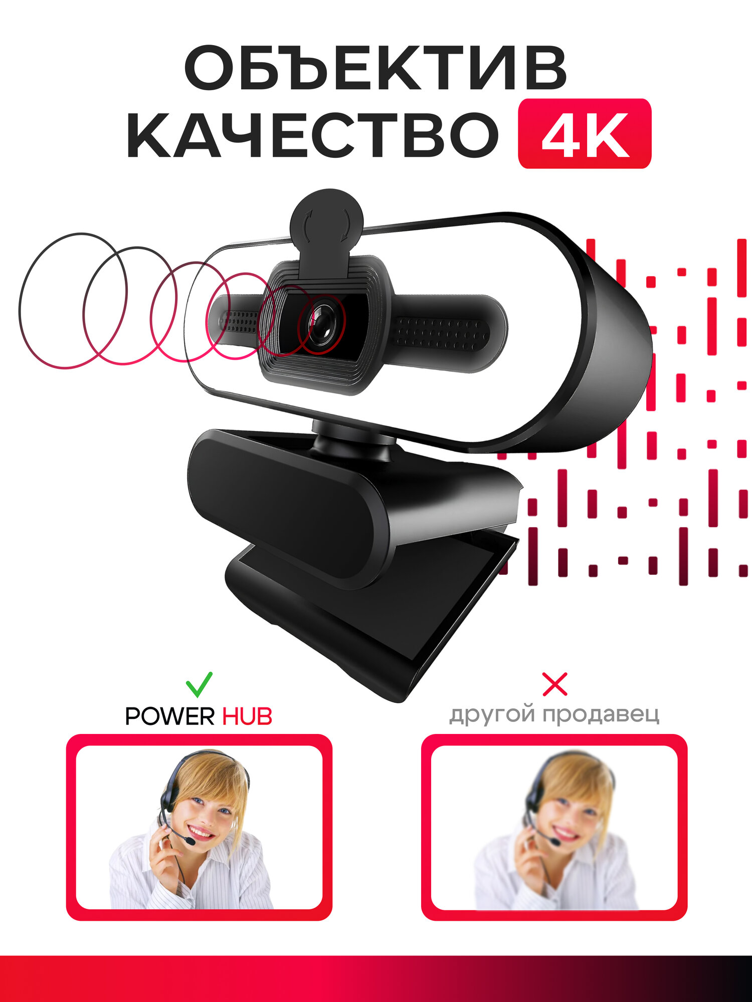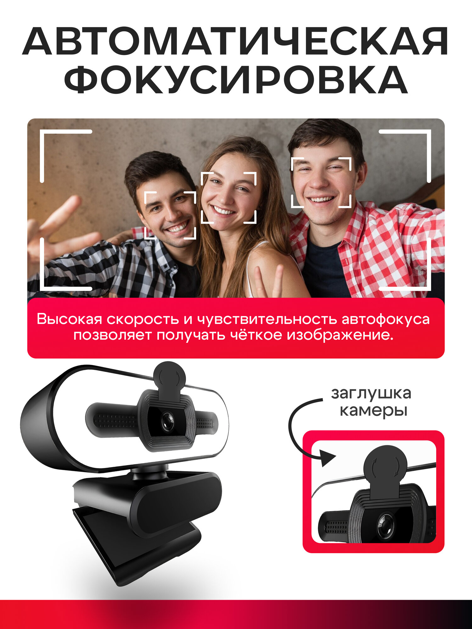 Web-камера 4К чёрная с встроенным микрофоном, шторкой и подсветкой интересное: