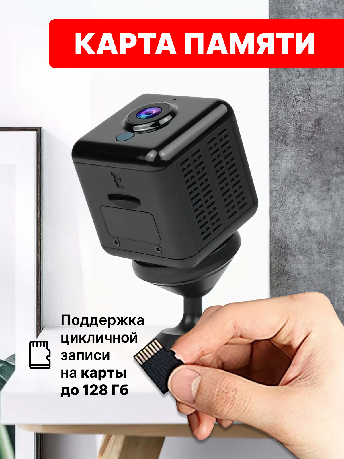 Веб камера для видеонаблюдения wi-fi Full HD, ИК-подсветка, мини камера для компьютера, черная интересное: