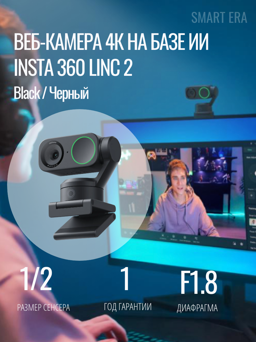 Insta360 Link 2 - PTZ 4K AI веб-камера для ПК/Mac, сенсор 1/2", для потоковой передачи, видеозвонков, игр интересное: