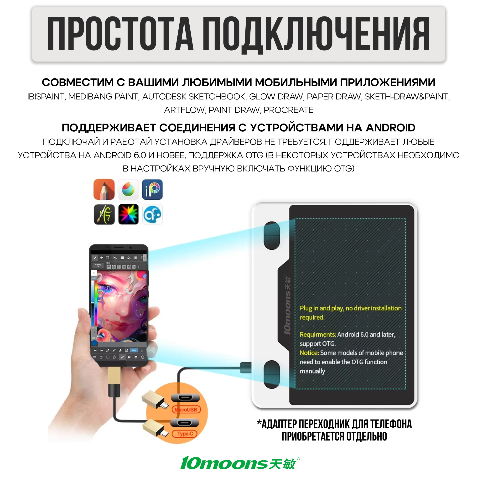 Графический планшет для рисования на компьютере и смартфоне размер А6 интересное: