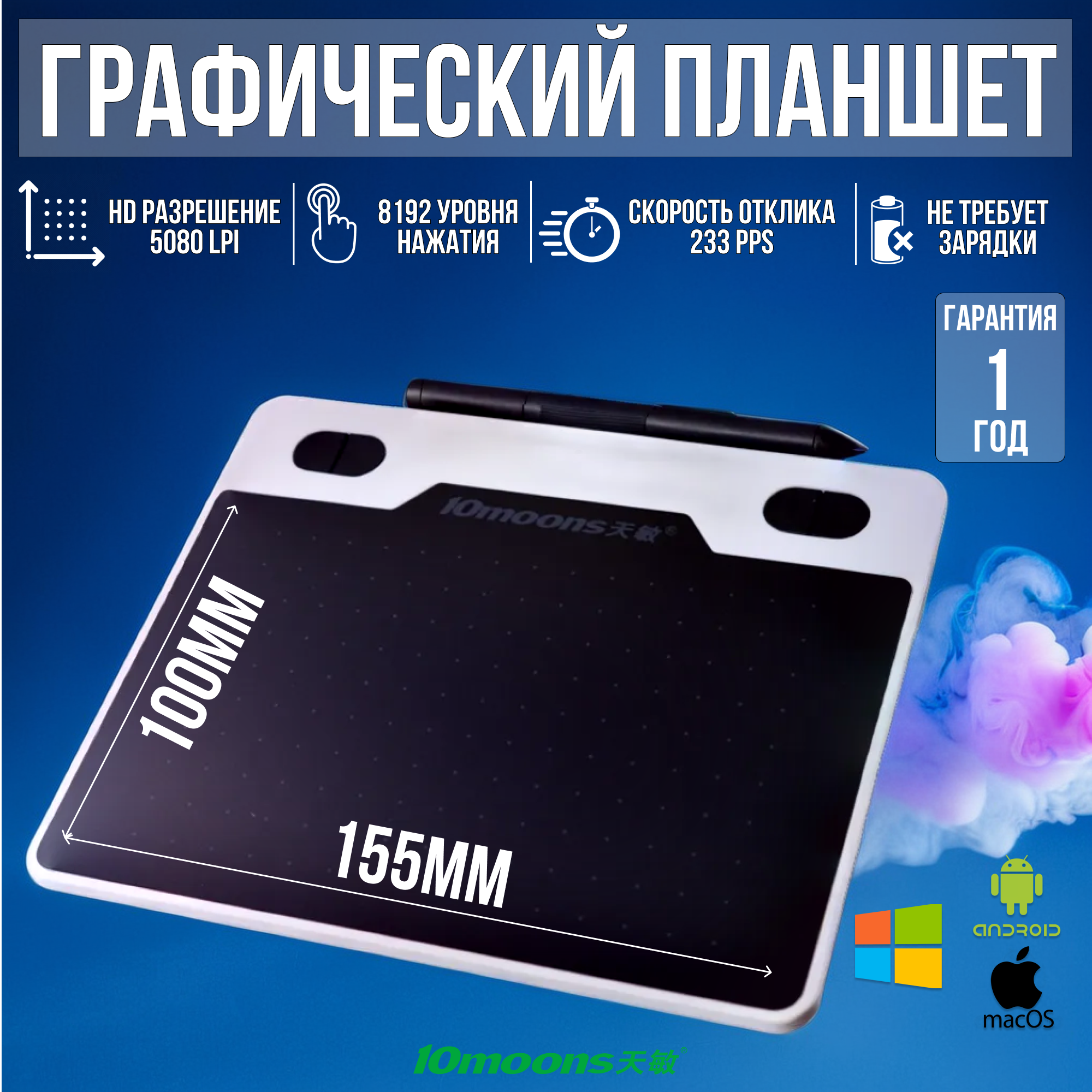Купить Графический планшет для рисования на компьютере и смартфоне размер А6