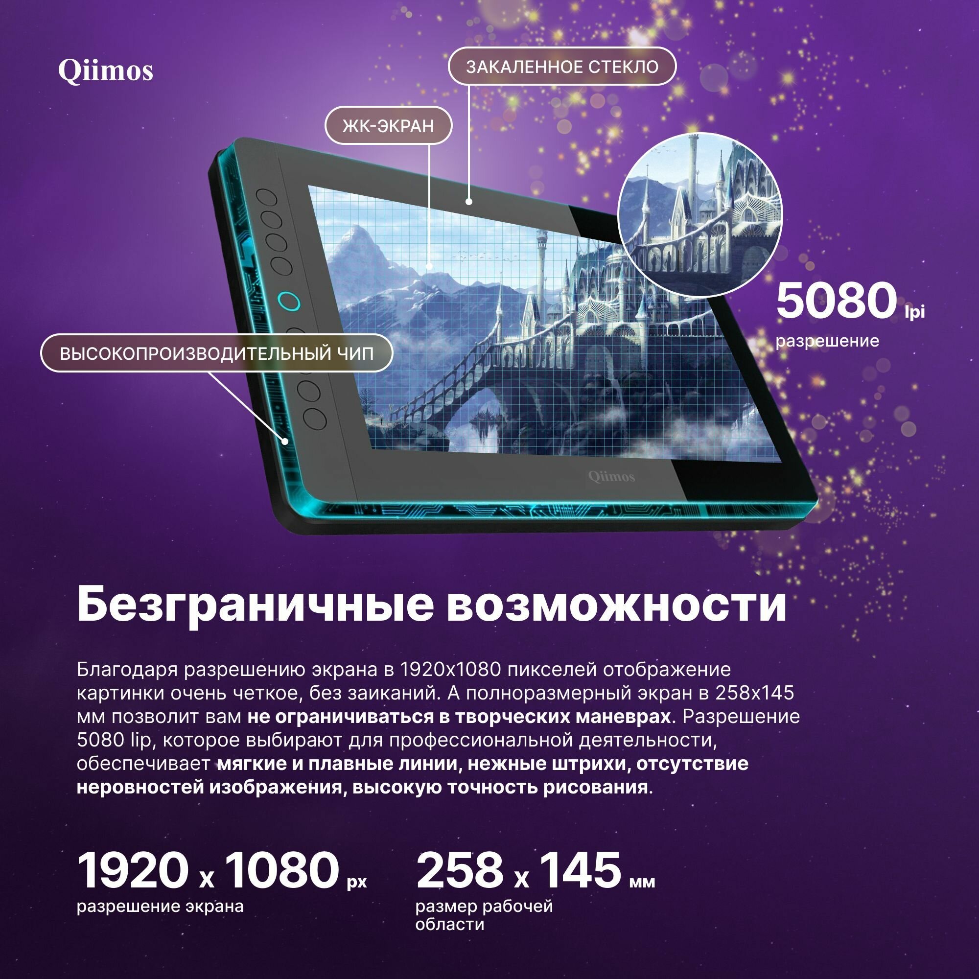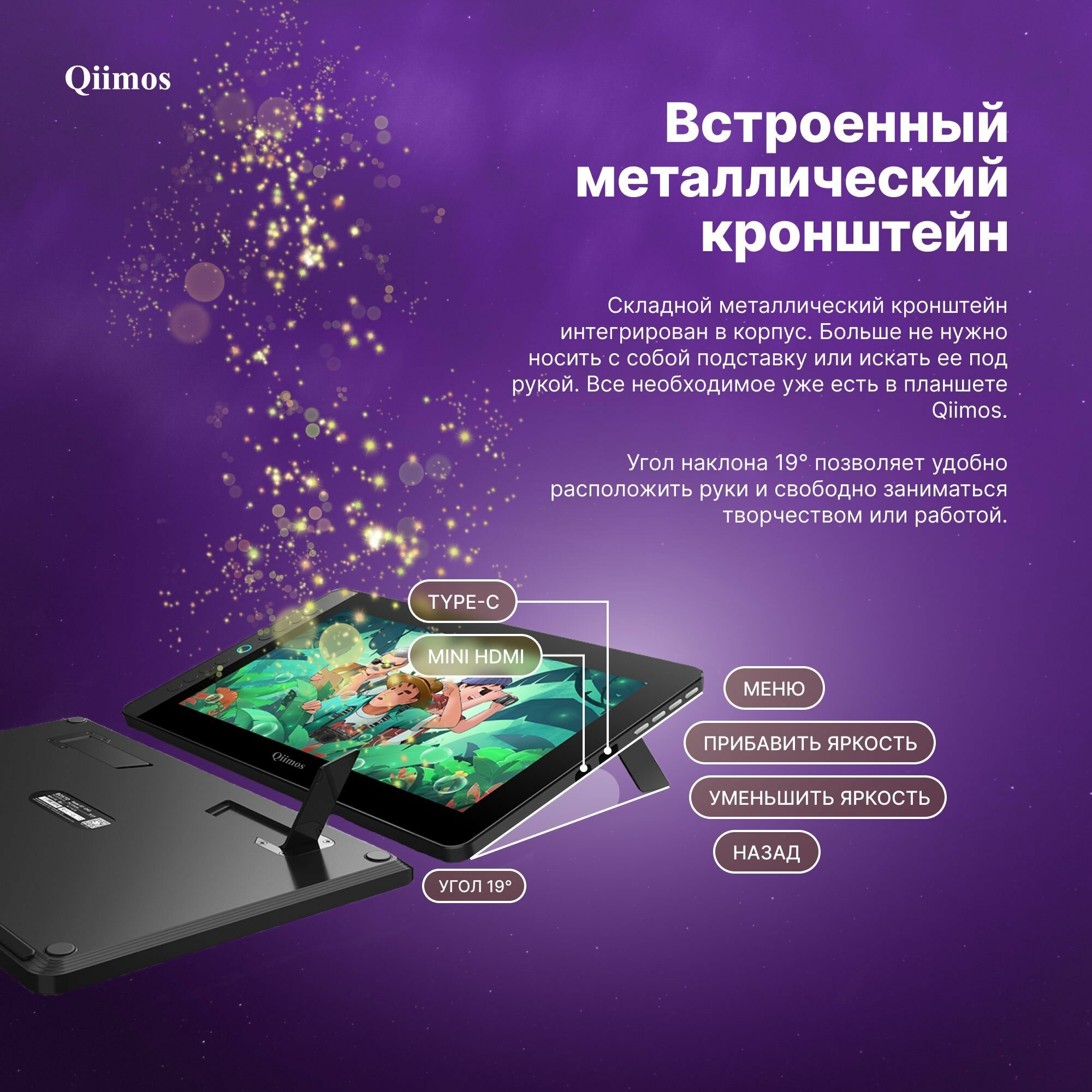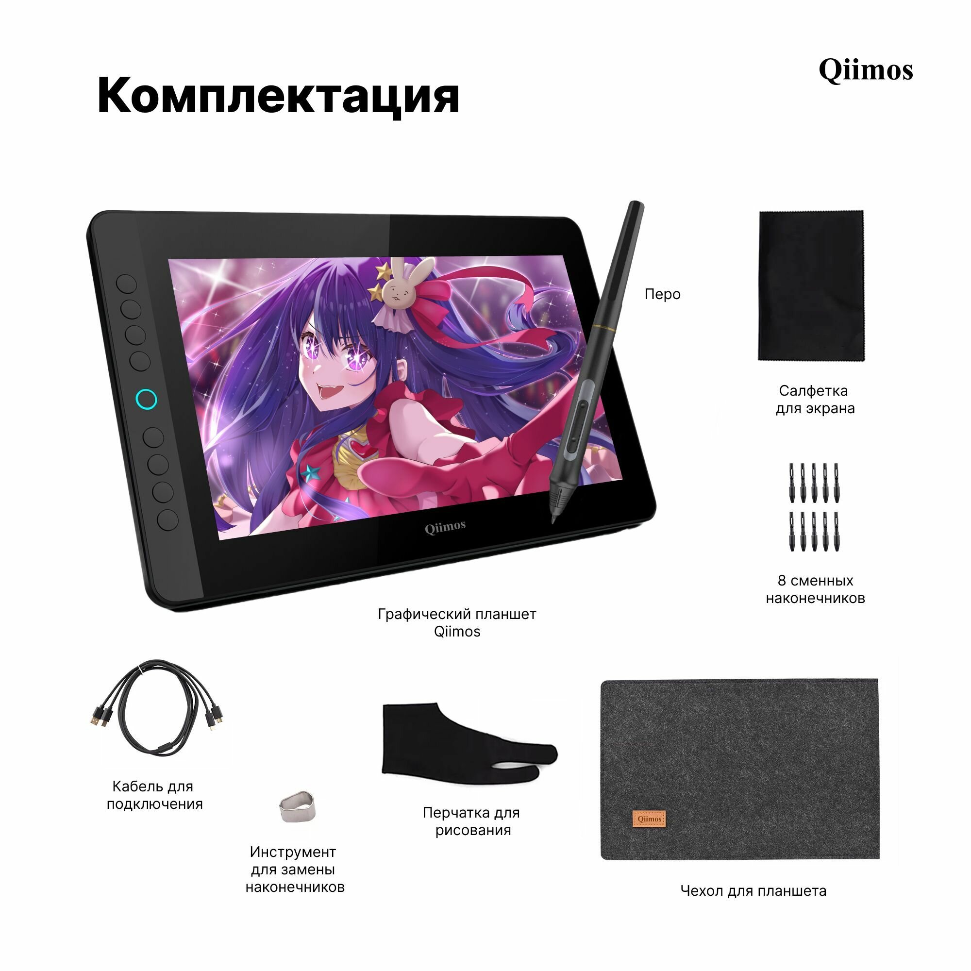 Графический планшет для рисования с экраном, Интерактивный дисплей Qiimos,12HDK черный, стилус. интересное: