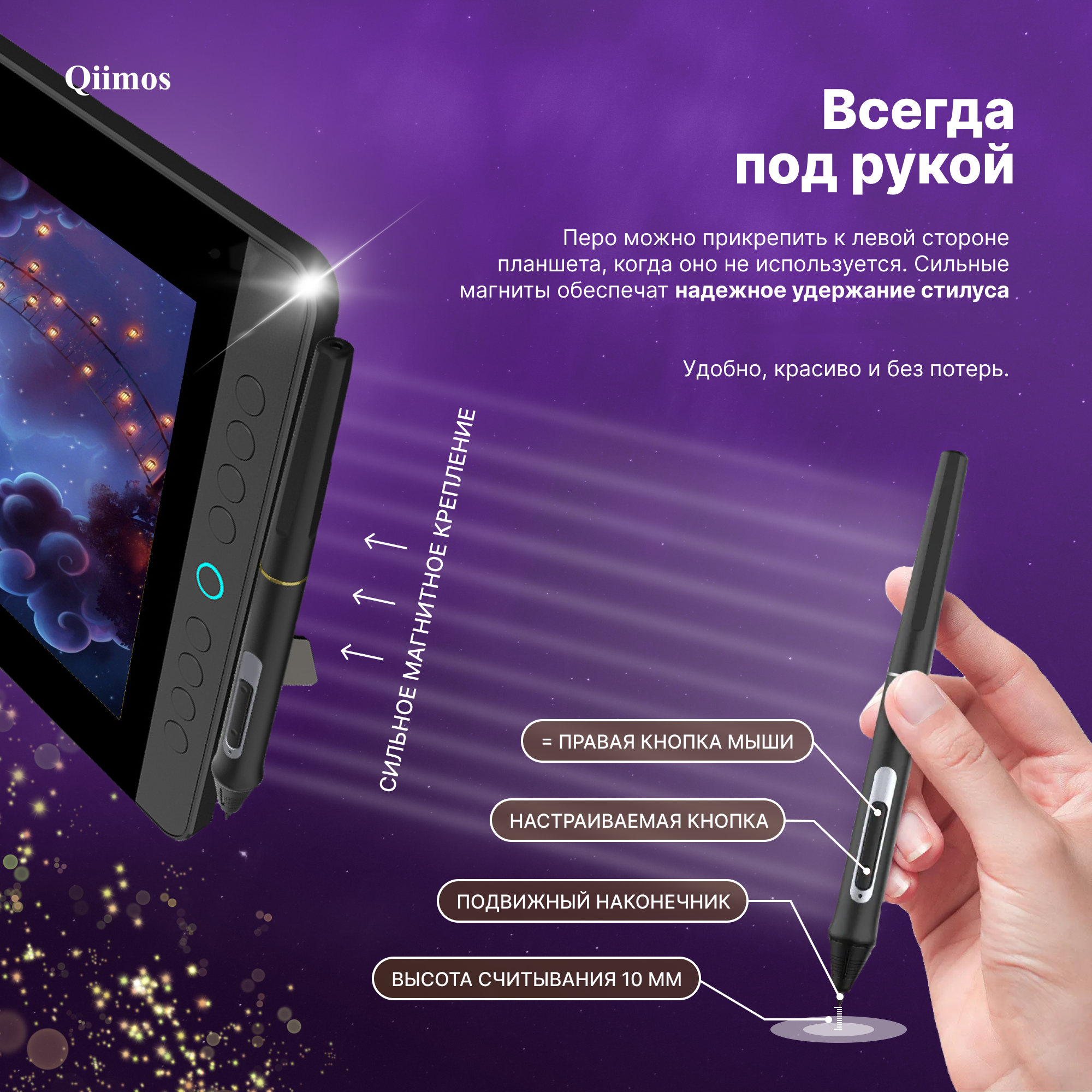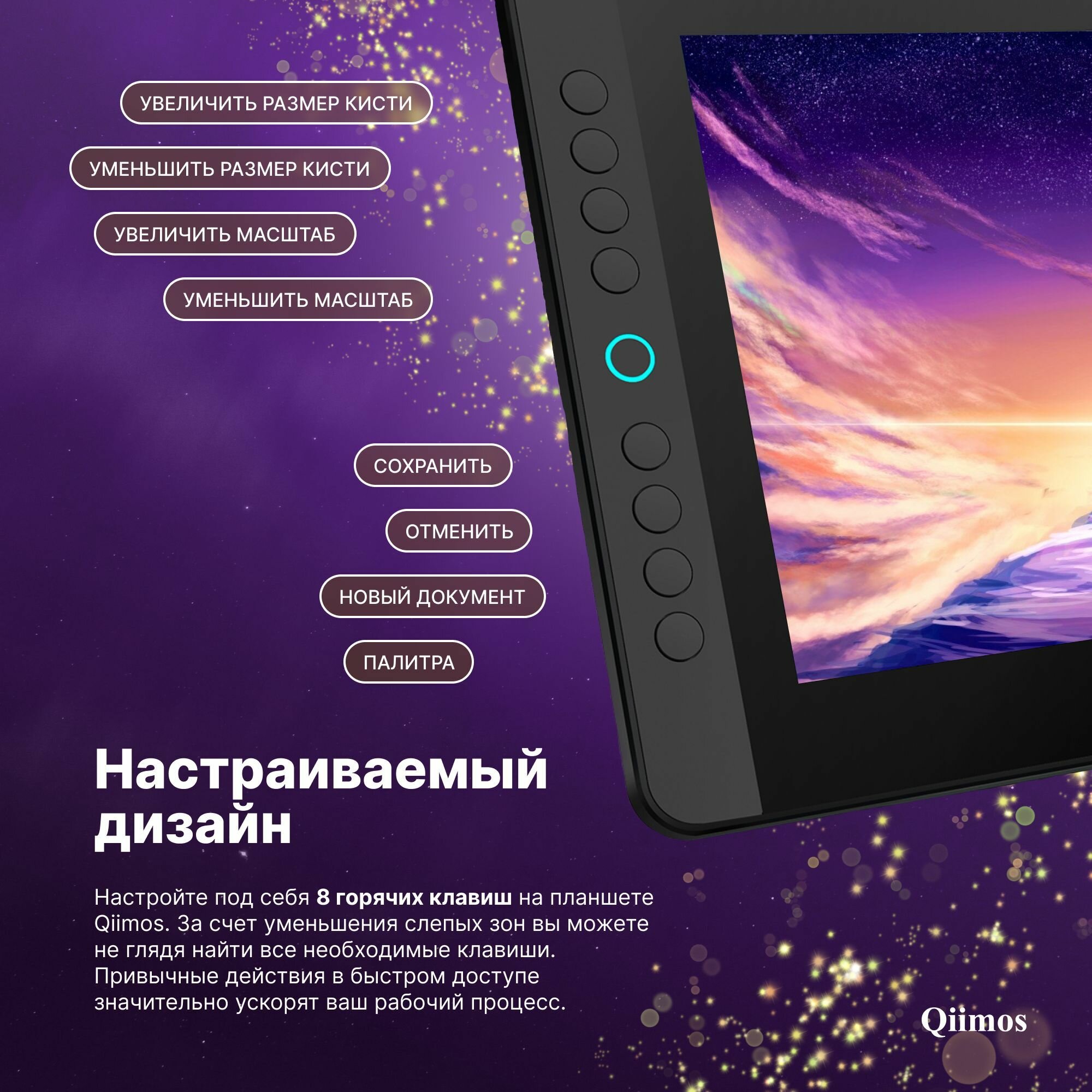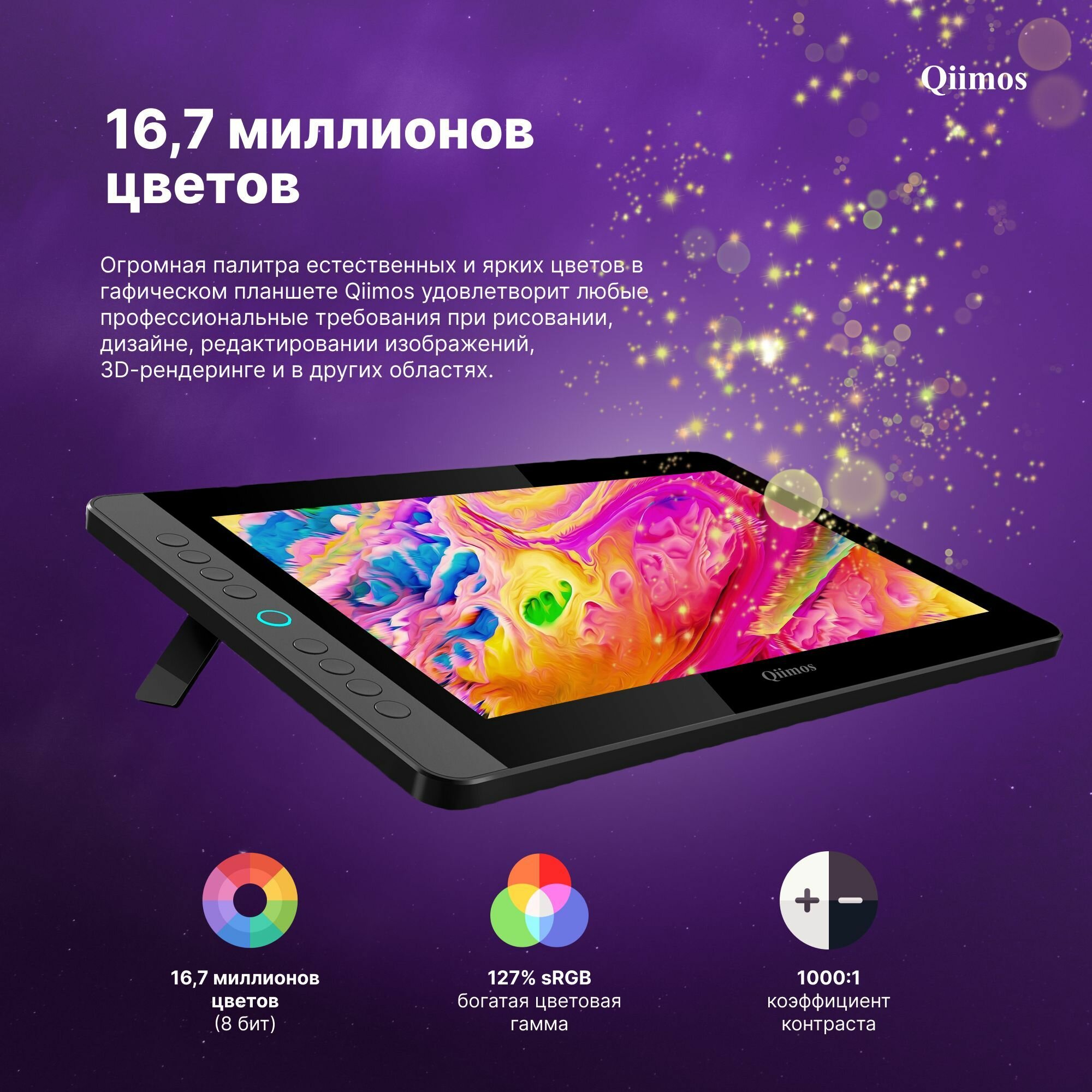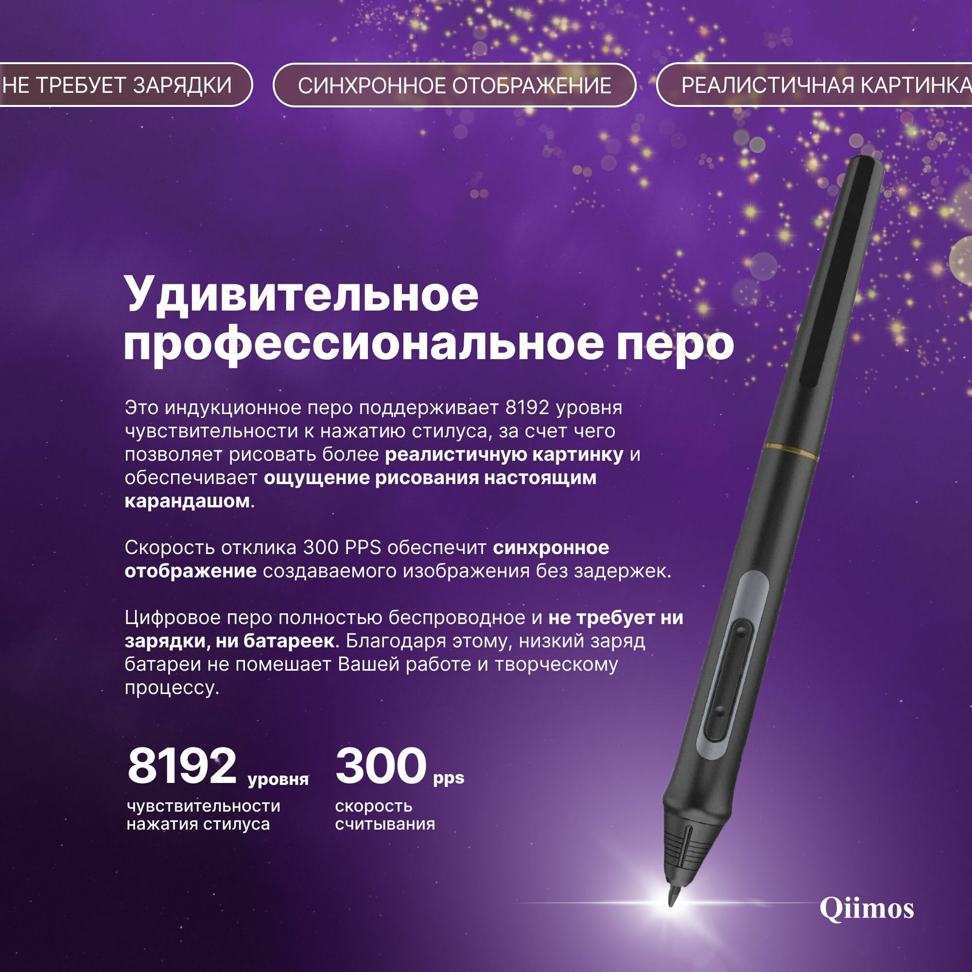 Графический планшет для рисования с экраном, Интерактивный дисплей Qiimos,12HDK черный, стилус. интересное: